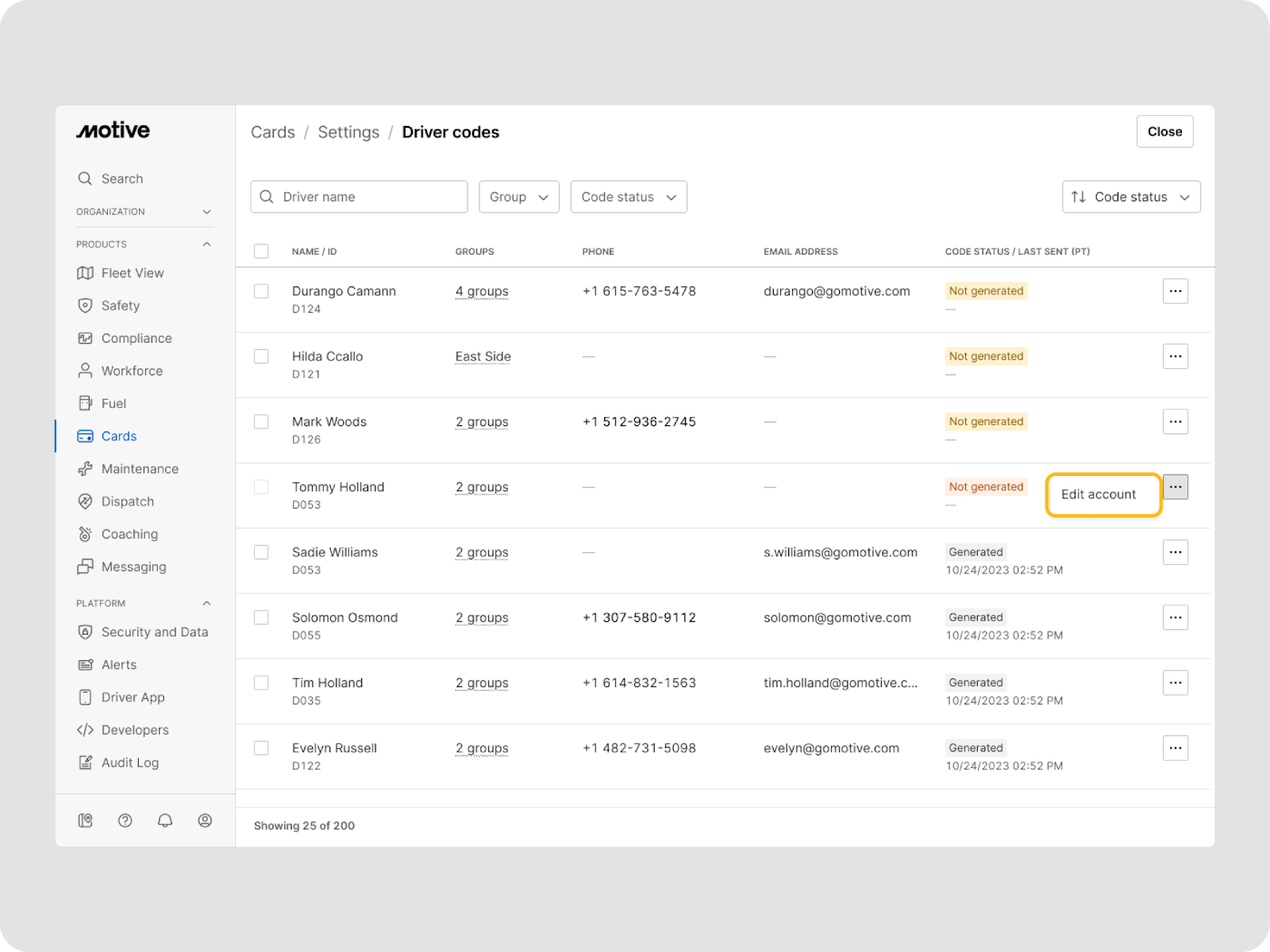 - If it is Not generated, click three dots > Edit account to confirm that a phone number or email address is added. Without an email or phone number, a driver code cannot be generated.
