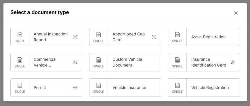 - AI-powered templates: Motive provides common Trip and Vehicle document templates that are powered with AI document information extraction. These templates allow users to simply submit an image or file of the document that they wish to upload and use AI to extract key information (such as permit name and expiration date) and, if its a vehicle document, associate the document to the correct vehicle by matching the unit number, license plate, or VIN. If AI-powered templates cannot be customized by Fleet Dashboard users. AI-powered templates that are duplicated and customized will turn into standard, non-AI templates.