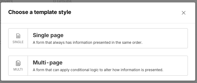 - Multi Page: These templates are set up for drivers and fleet users to advance between different pages to submit the information that is requested. Multi-page templates support the use of conditional logic so that document templates adapt based on a driver's input. This is meant for complex information gathering.