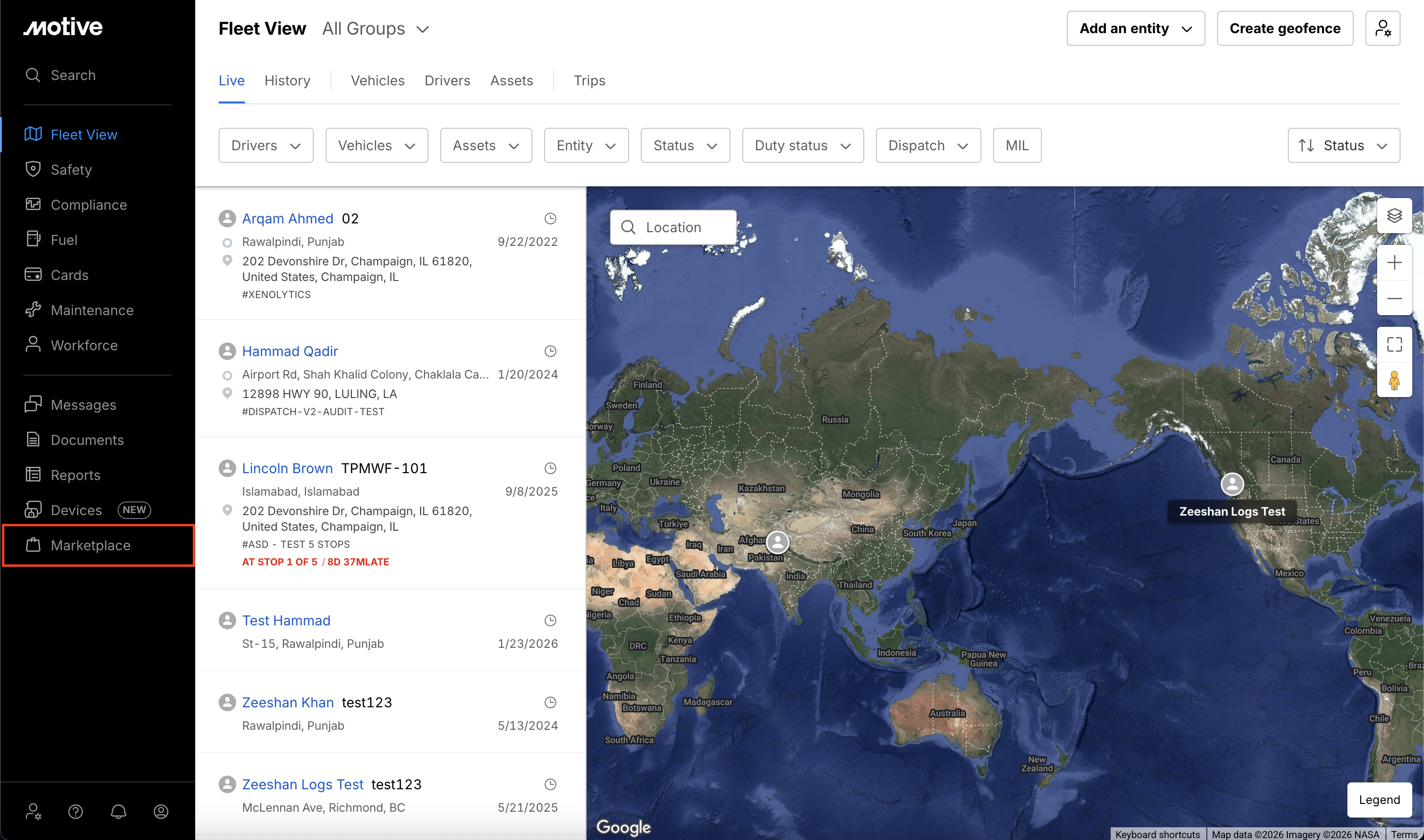 - Real-Time Fleet Visibility: Track vehicles and drivers live on the map for better dispatch oversight.