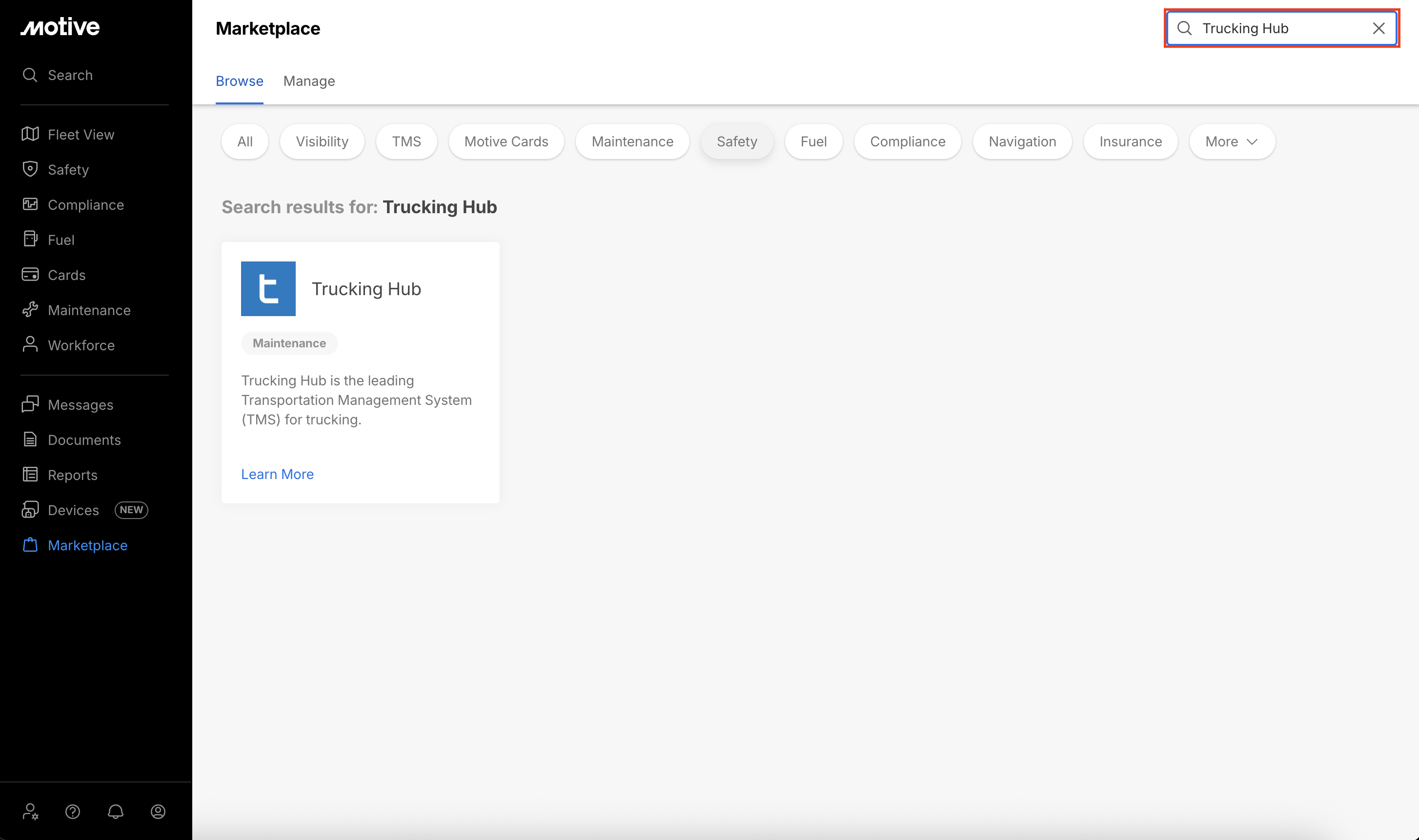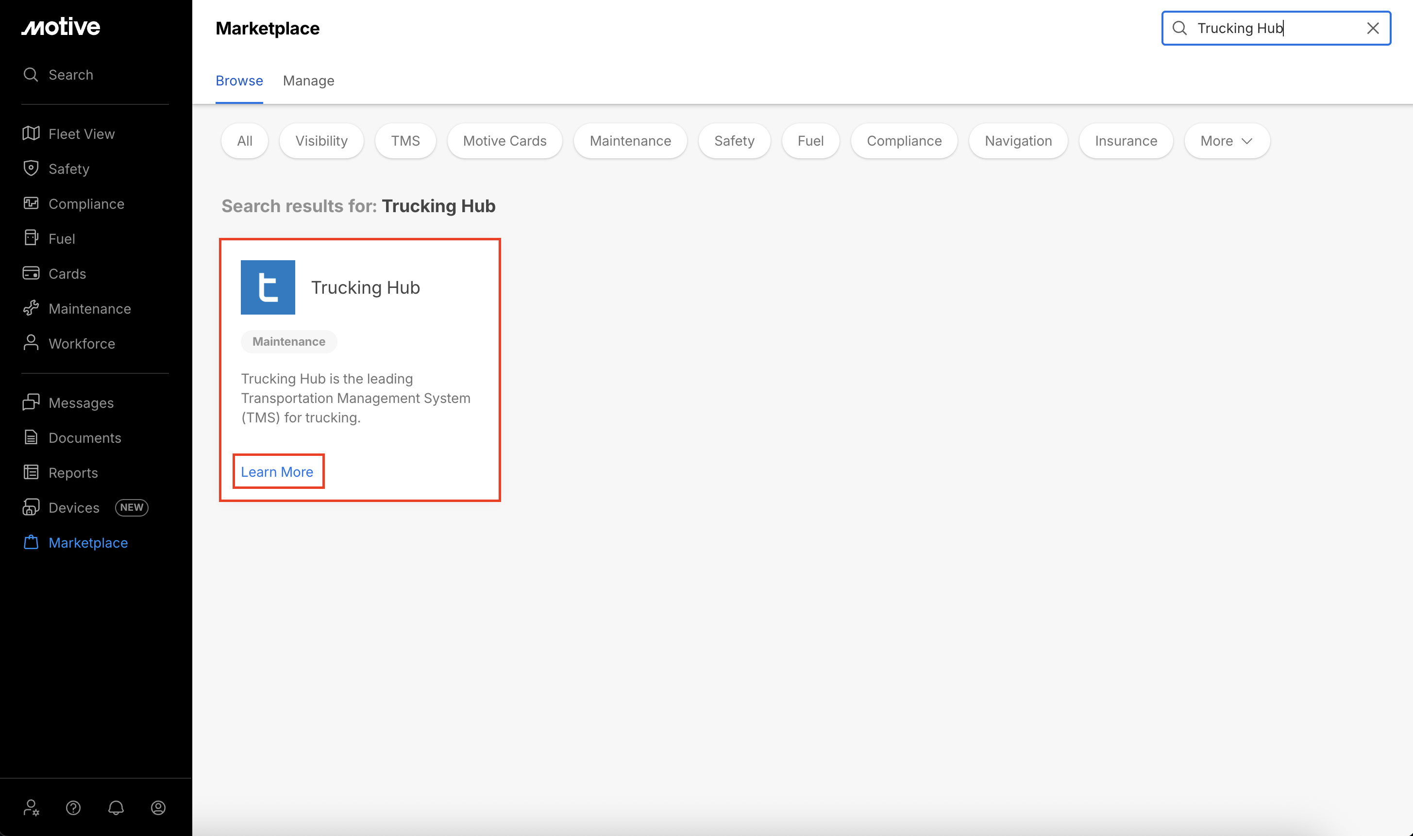 Locate Trucking Hub and click Learn More.