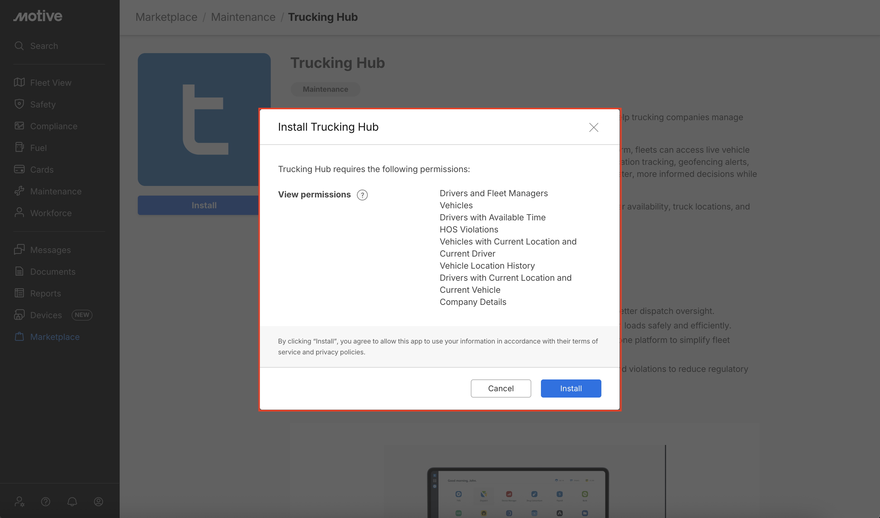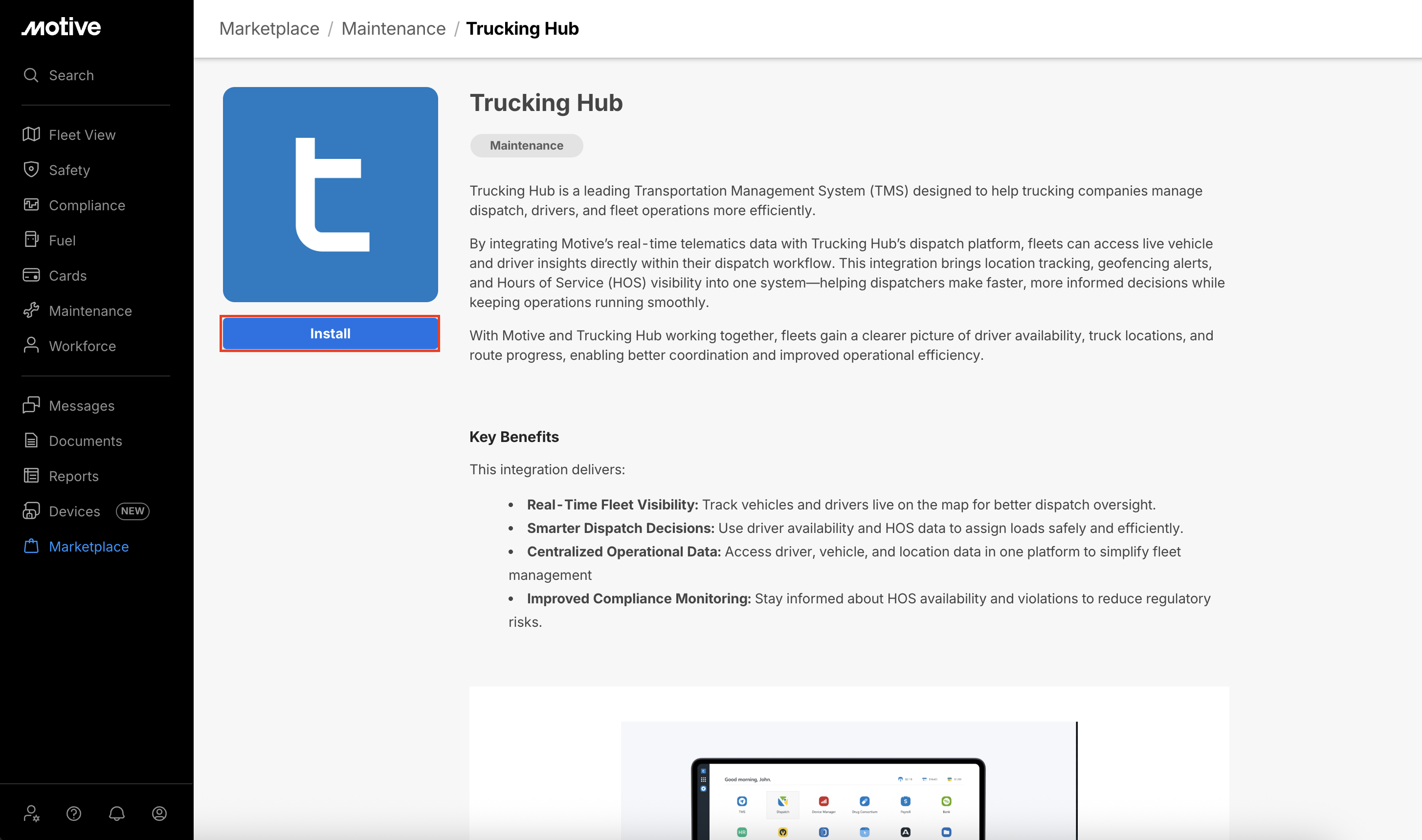 Log in to the Motive Fleet Dashboard and click Marketplace.