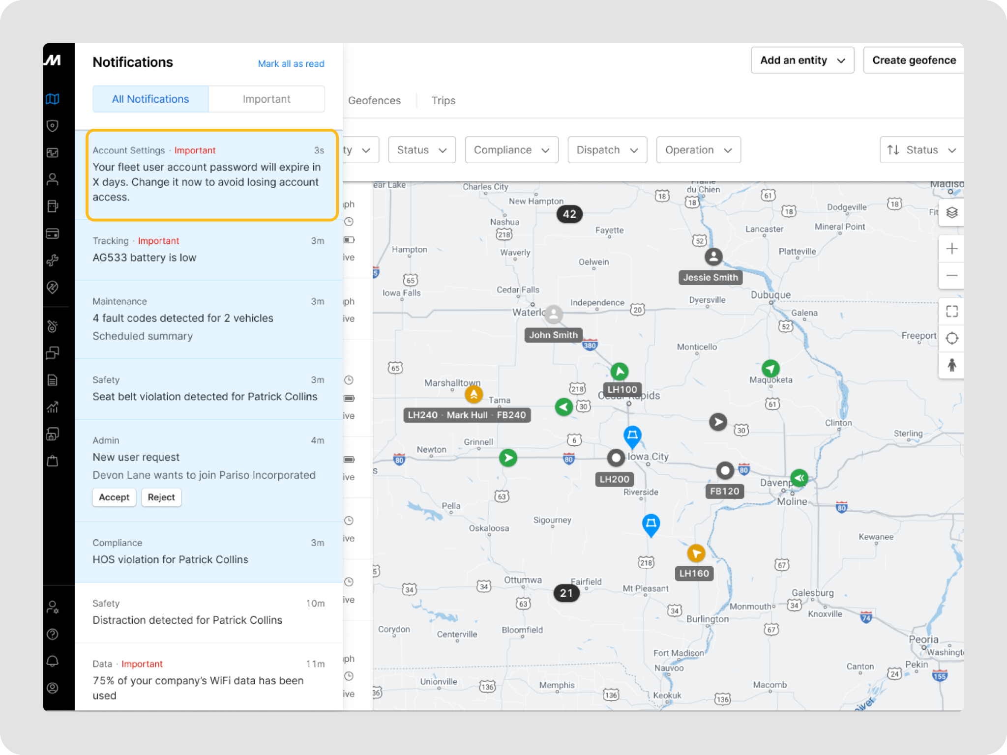 This ensures your fleet remains secure without disrupting the daily workflows of your dispatchers, admins, and managers.