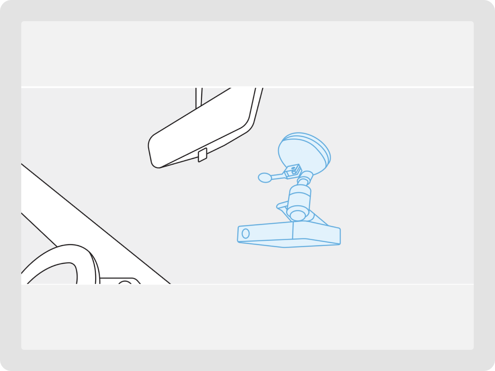 - Press the suction cup to the windshield and lock the lever on the Suction Cup to secure the assembly in place.