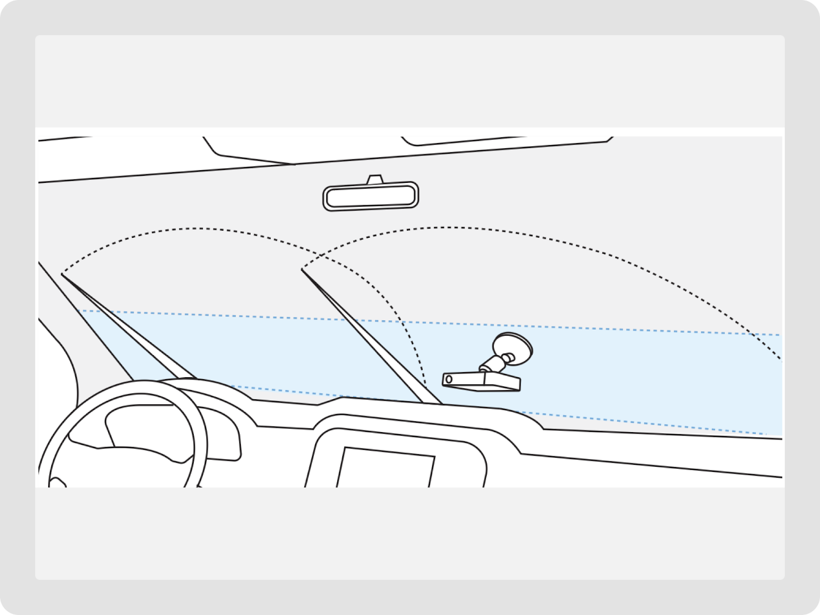 - Bottom mounting location (alternative): Position the dashcam not more than 175 mm (7 inches) above the lower edge of the area swept by the windshield wipers