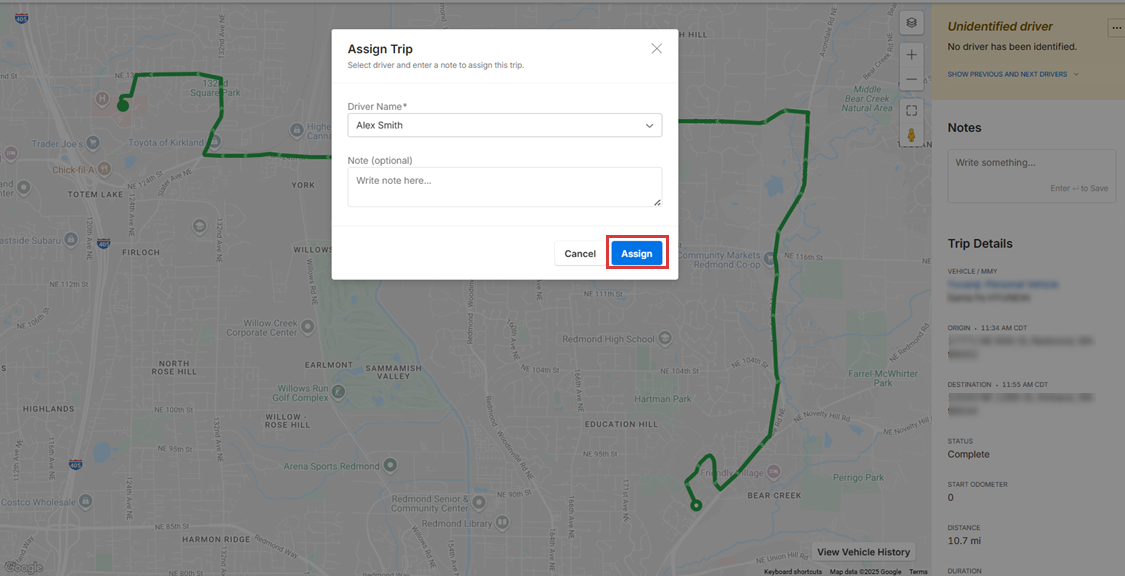 Managing unidentified trips is not only about assigning them. Motive Fleet Dashboard enables Fleet Managers to cancel or reassign a pending trip assignment as well.