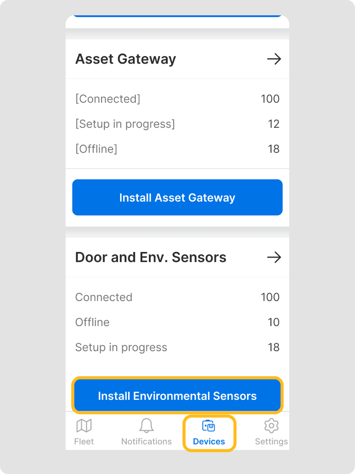 Assigning a Door & Environmental Sensor to an Asset Gateway Fleet Dashboard
