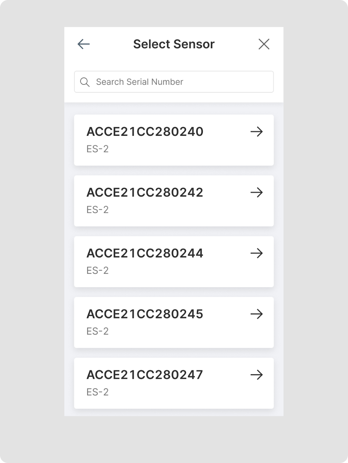 - Use the search bar to enter the serial number of your desired Environmental Sensor.