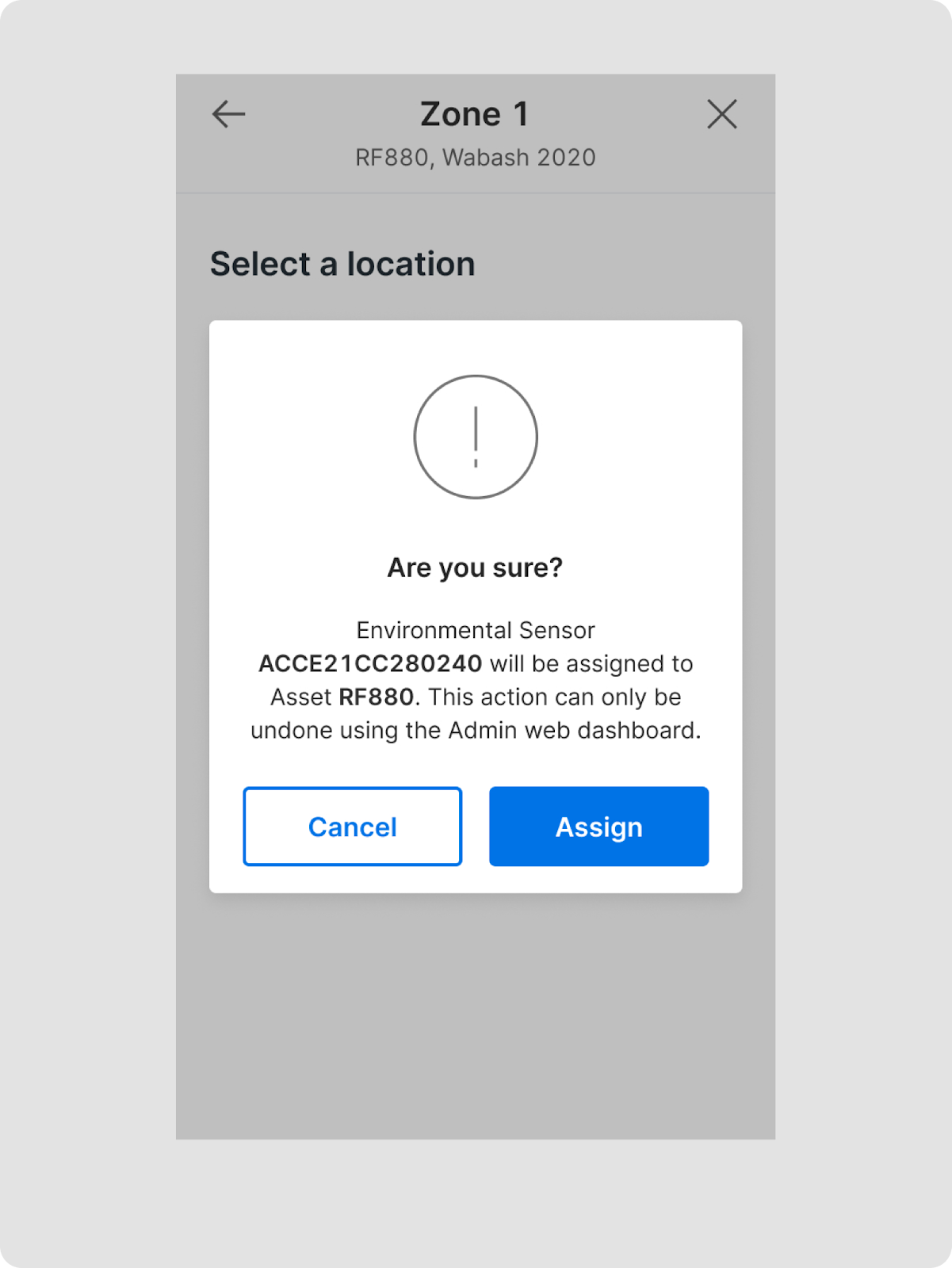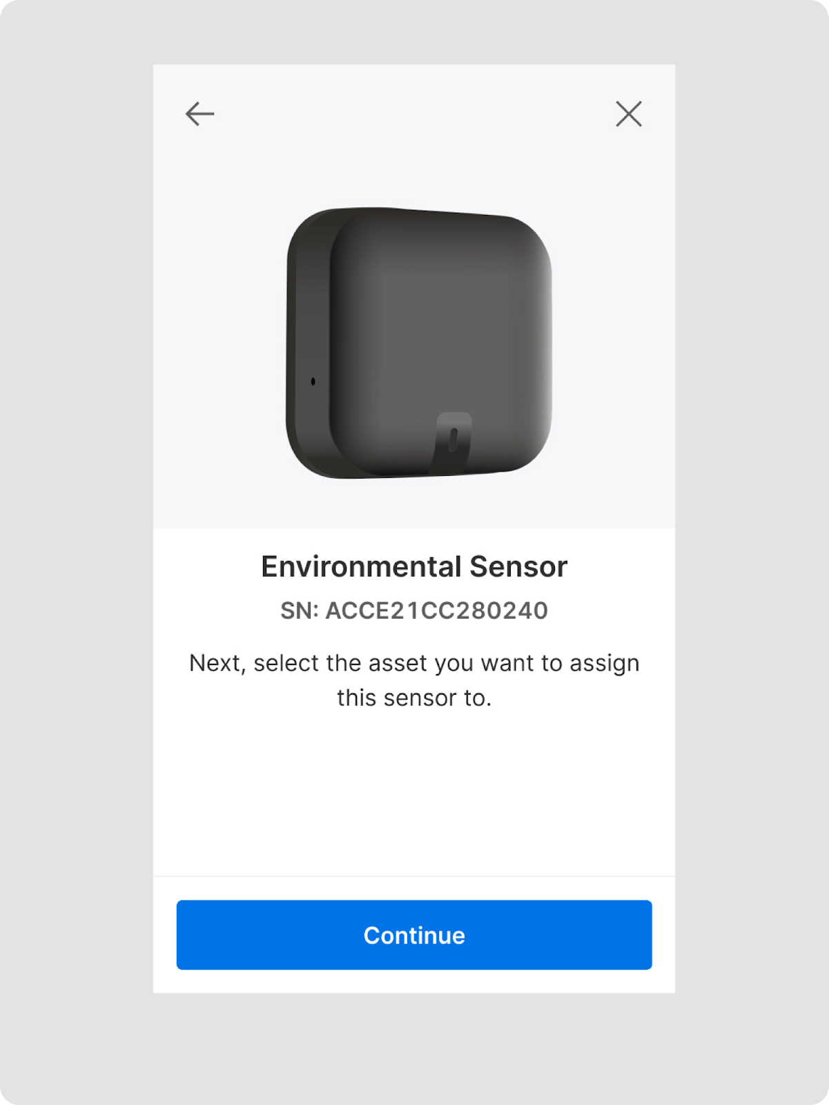 | Note: After assigning the Environmental Sensor to the Asset Gateway, a physical install is still necessary to complete the installation process, if not already done. |