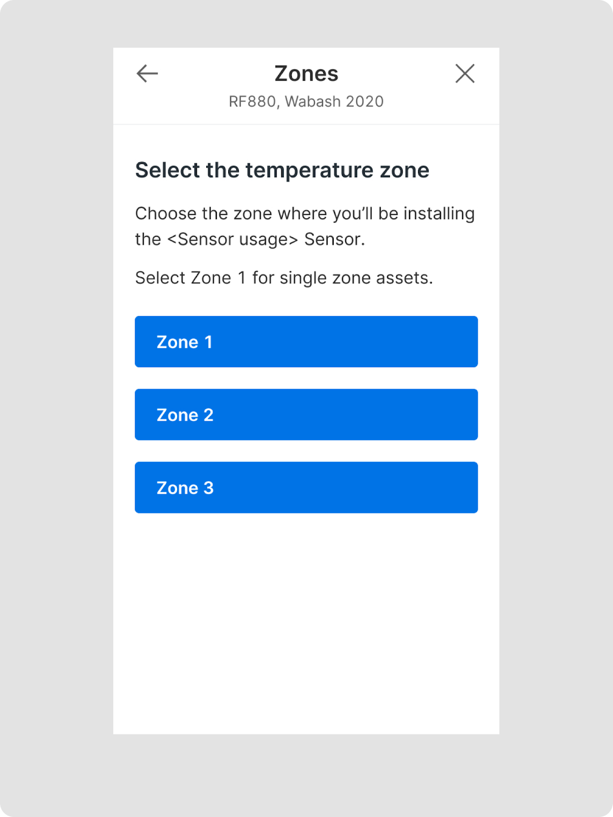 - Select the zone and location of each sensor, which depends on whether you have a single reefer or a multi-reefer, and its actual installation location.