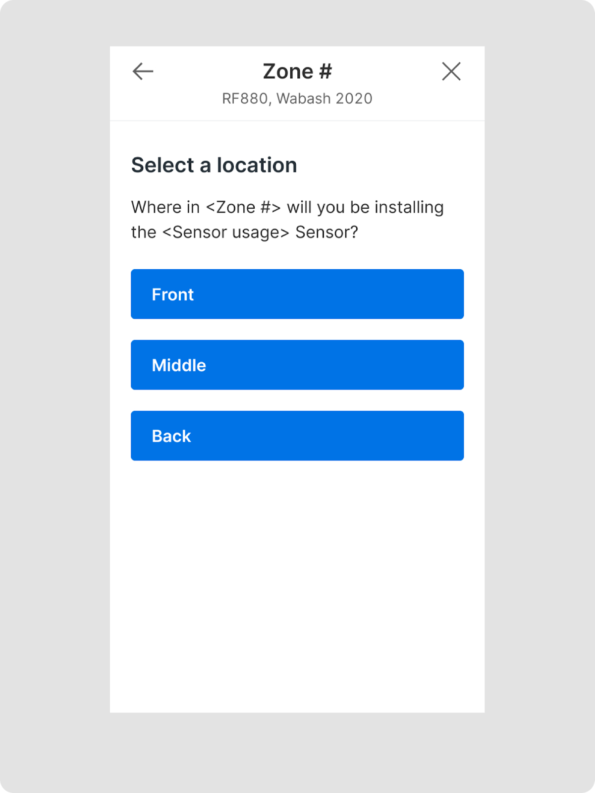 - Select the Zone and Location for the installation of your Environmental Sensor.