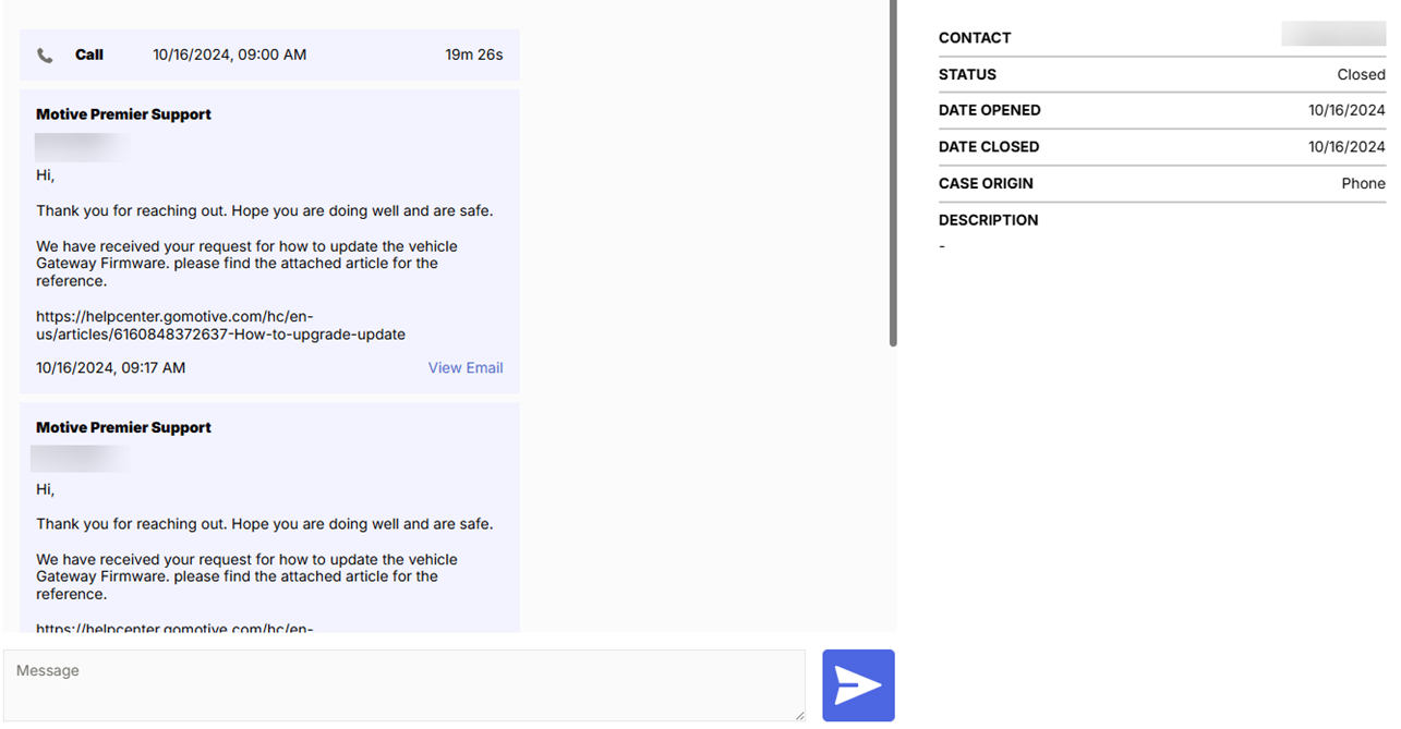 When you case is resolved, Motive’s representative will comment on your case.