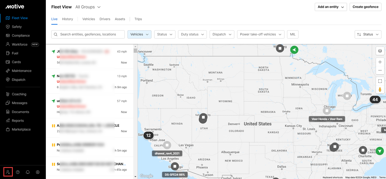 1. Inicie sesión en el Panel de Flota y haga clic en el icono Administrador en la esquina inferior izquierda.