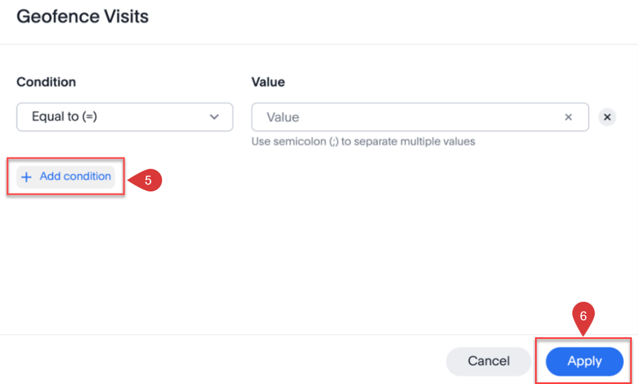 5. Para un filtro de medida, seleccione Agregar condición.
