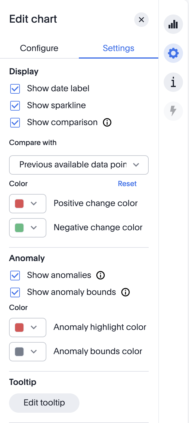 1. Seleccione el ícono de configuración del gráfico y haga clic en Configuración para editar el gráfico.