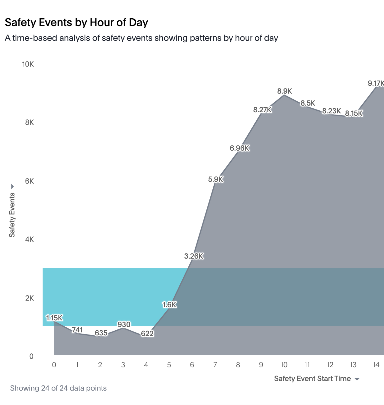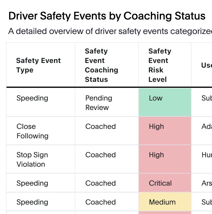 Motive Analytics es compatible con la mayoría de los datos de Seguridad, Rastreo y Telemática, Combustible y Cumplimiento que está usted acostumbrado a ver en la plataforma Motive. Motive Analytics apoya una amplia variedad de respuestas, incluyendo tablas, gráficos de barras, gráficos circulares, gráficos de líneas, mapas de calor y más. La elección de la visualización depende de los datos y la información que desea extraer.