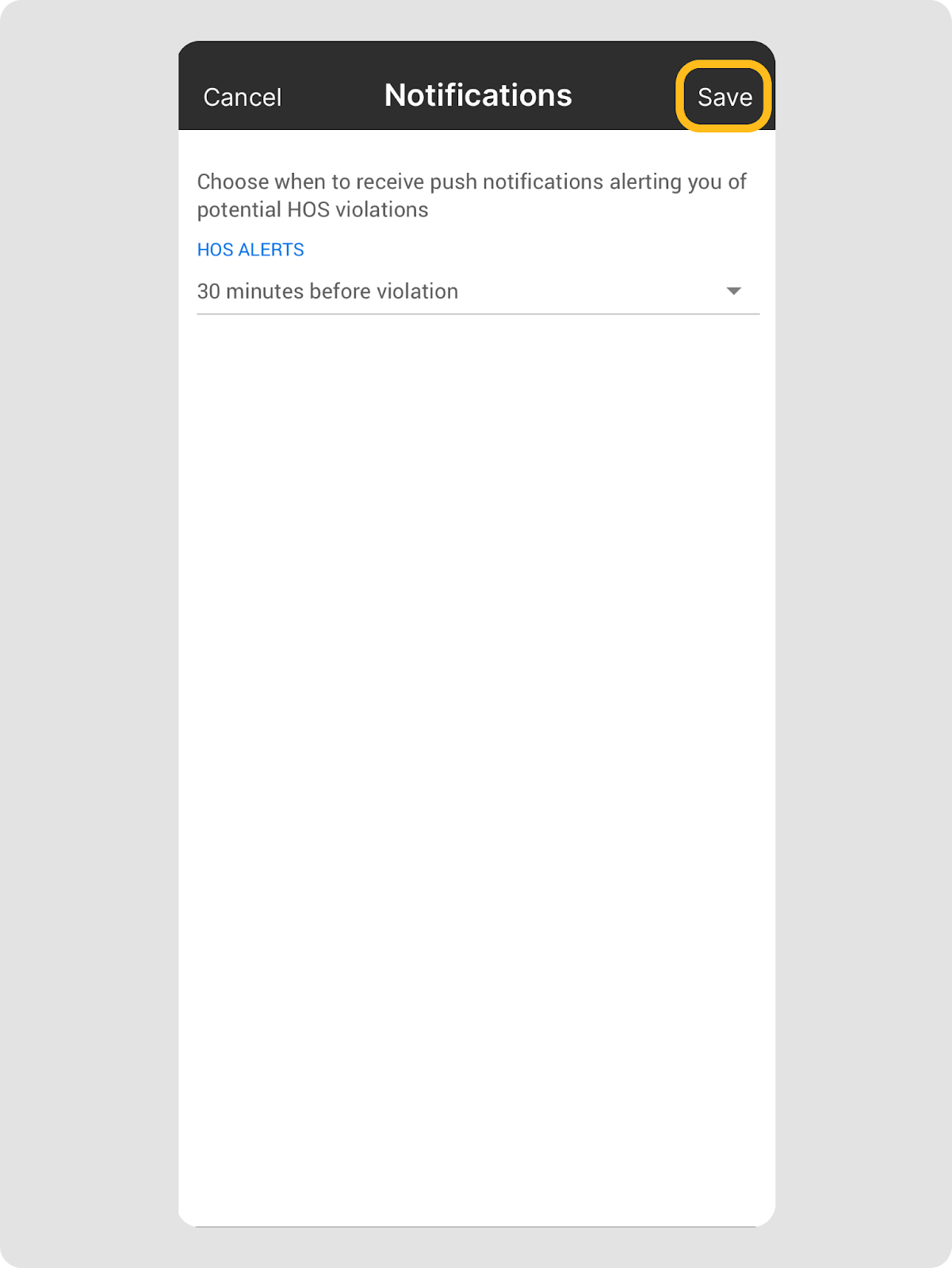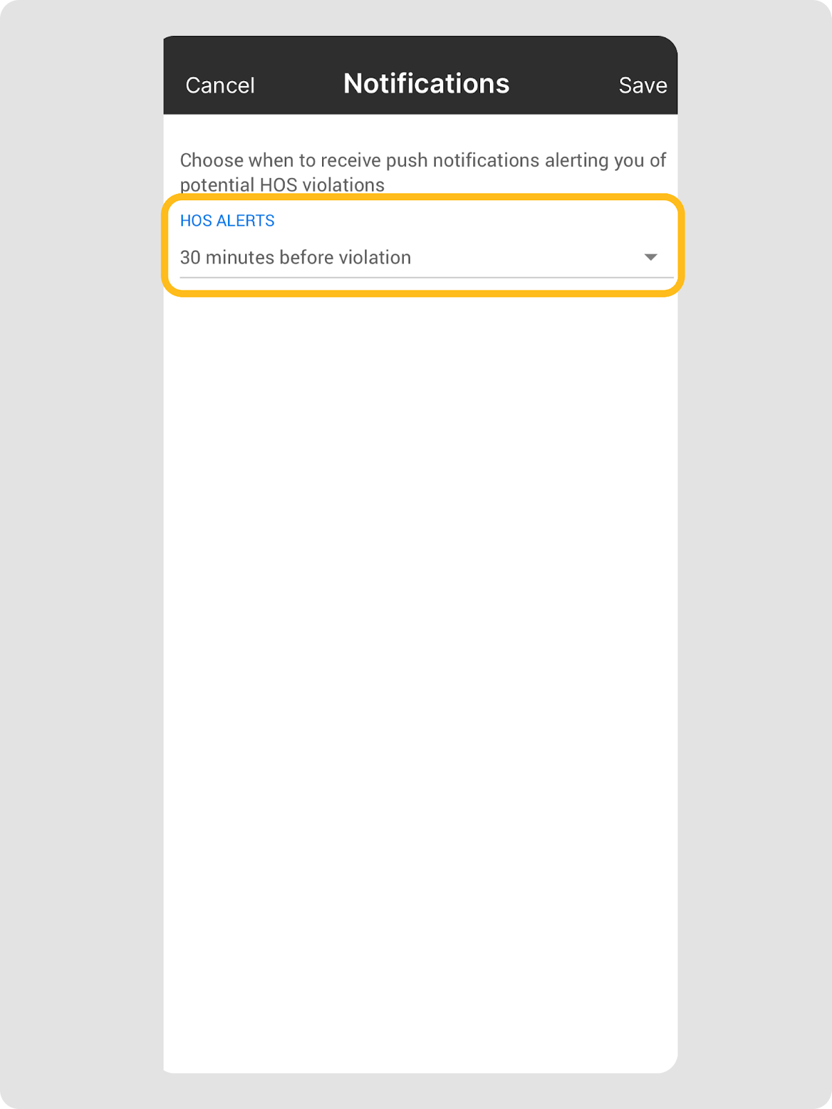- Seleccione la frecuencia de alertas de violación de HOS que desea.