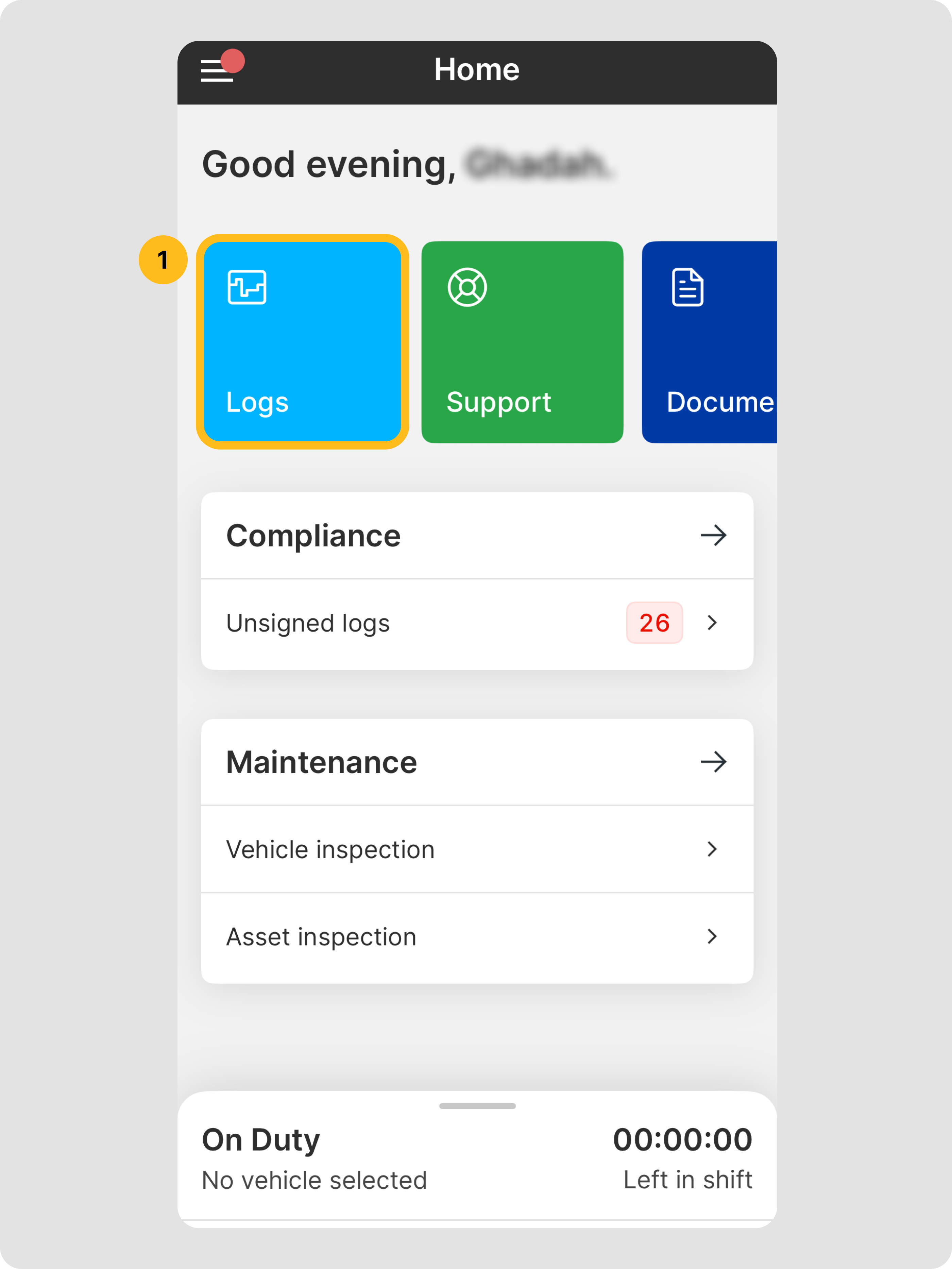 En la Aplicación Motive Driver, toca Registros.