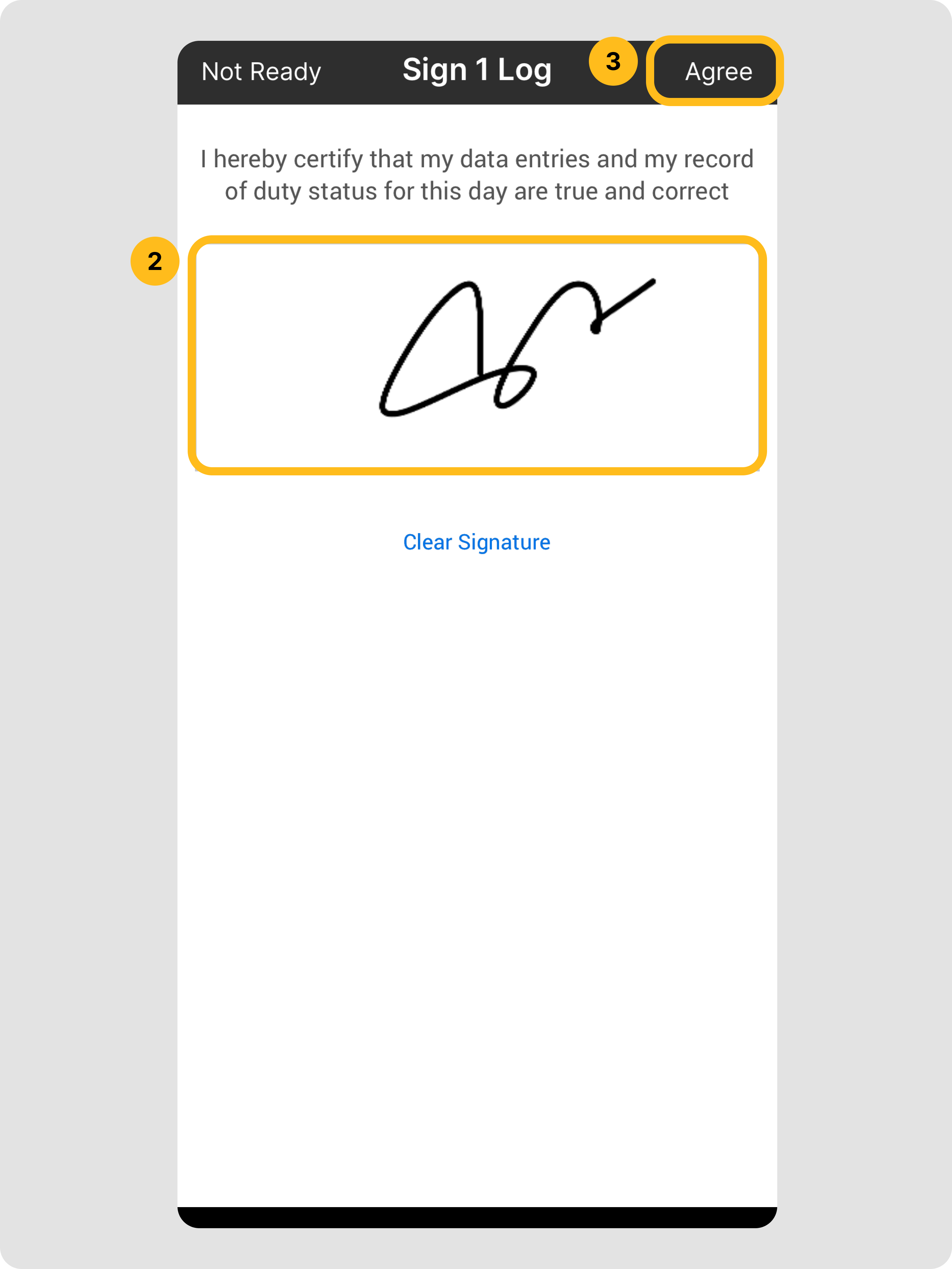 - En la pantalla de certificación, toca Firmar Registro.