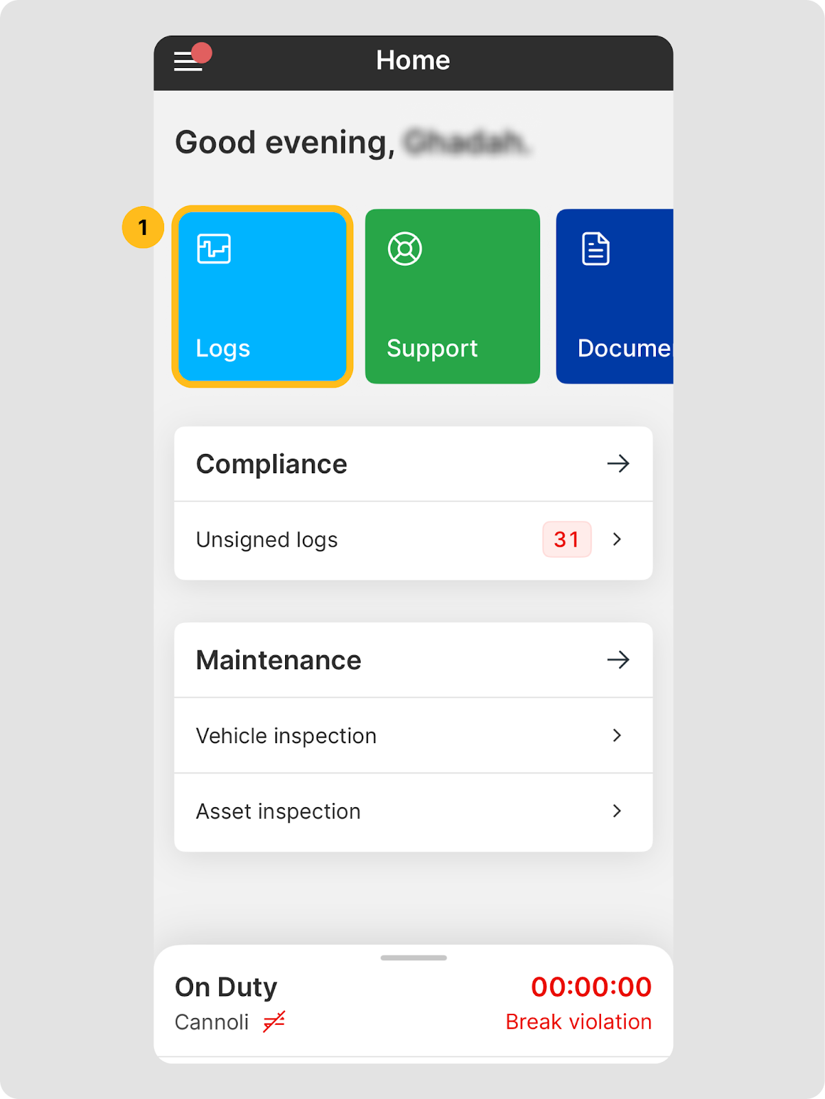 - Cambios fáciles de estado de servicio: Actualiza tu estado (por ejemplo, conduciendo, fuera de servicio, en compartimento para dormir) con solo unos toques, facilitando el cumplimiento durante todo el día.