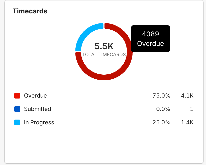 | Nota: El widget de Tarjetas de Tiempo muestra el conteo total de tarjetas de tiempo por estado hasta la fecha y hora actuales. |