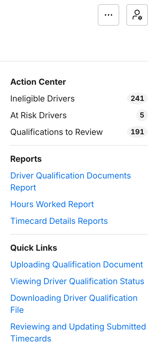Esta sección le brinda acceso rápido a conductores y calificaciones que necesitan su atención y muestra conteos en vivo para cada uno. Hacer clic en el conteo lo lleva a la pestaña de calificaciones prefiltrada para los conductores y/o calificaciones respectivas para tomar acciones correctivas.