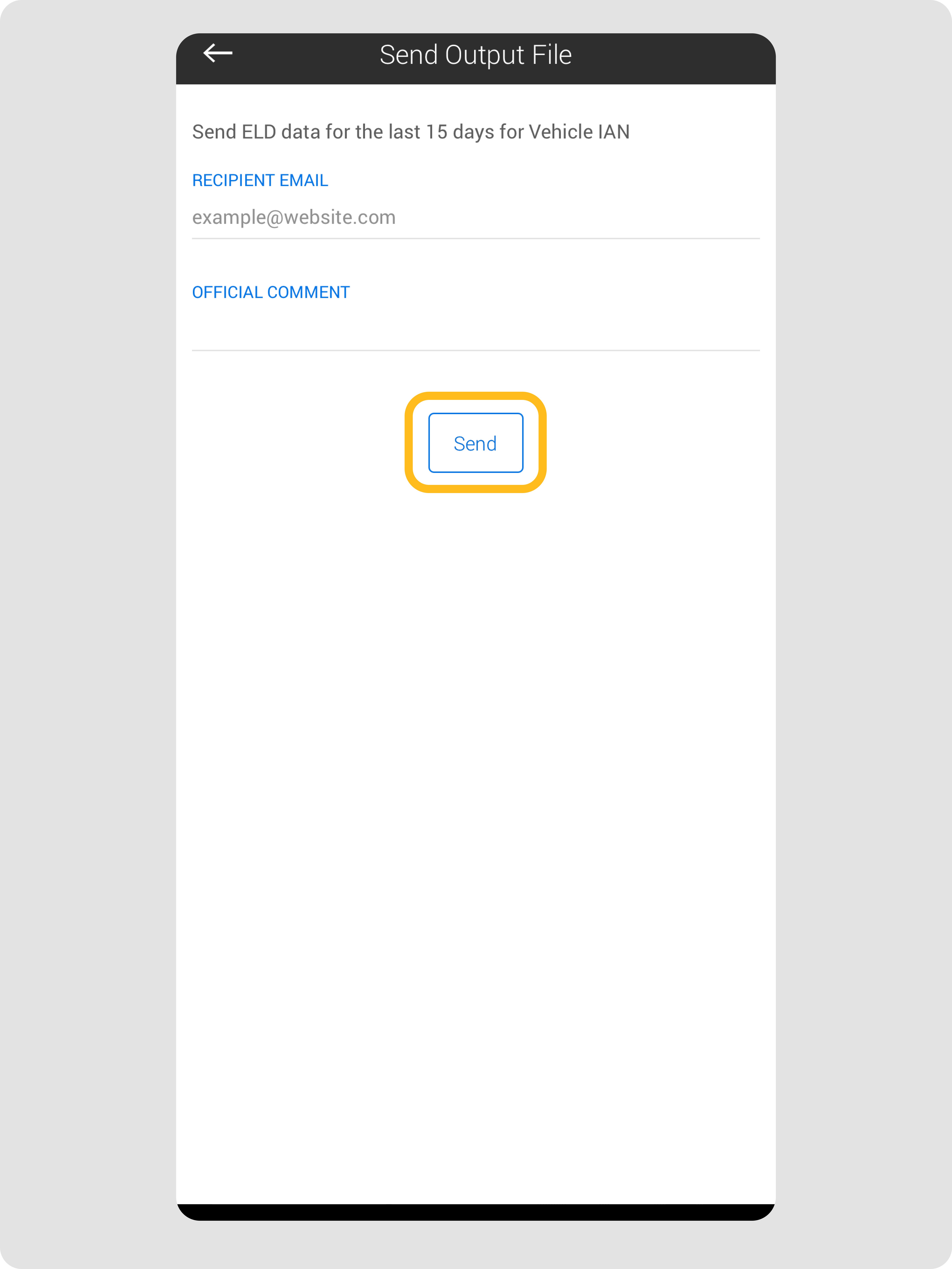 Toque el botón Enviar archivo de salida para iniciar una transferencia de datos durante una inspección en carretera.