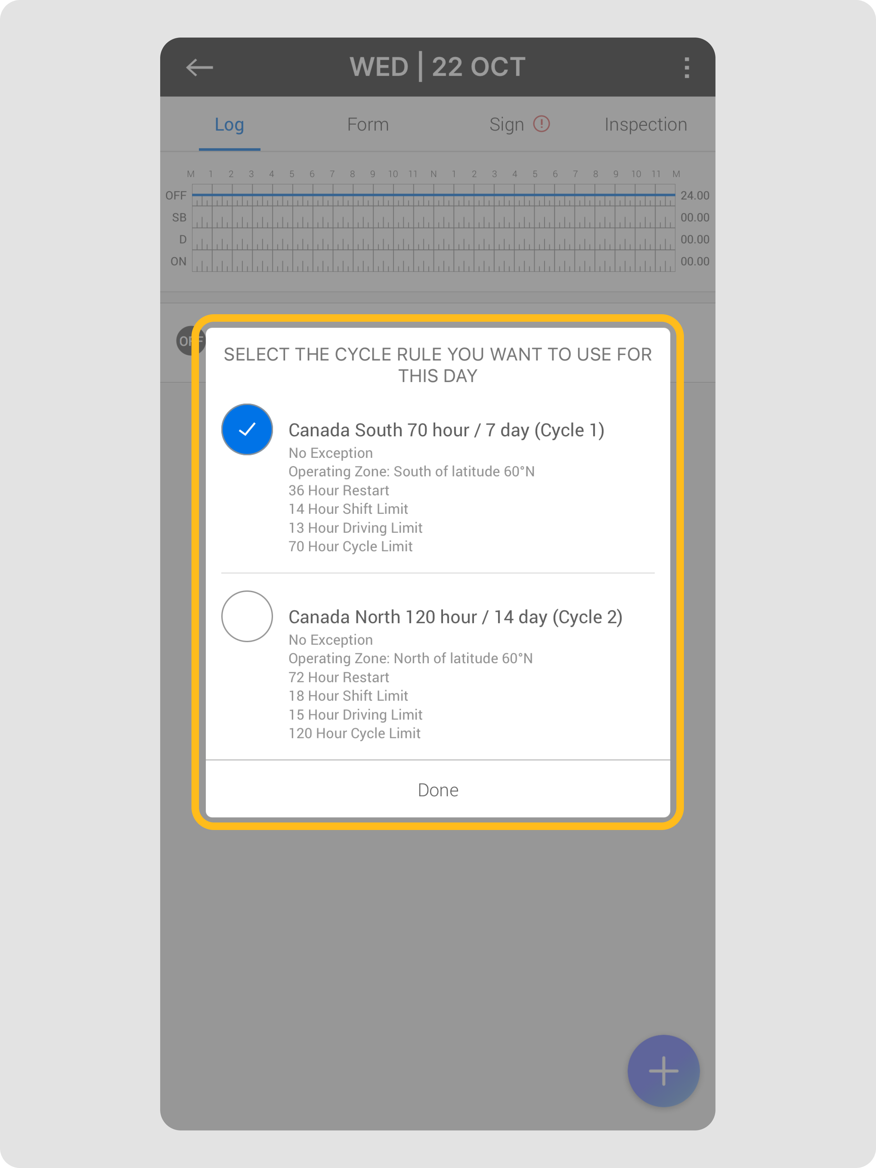 Los conductores canadienses pueden alternar entre dos ciclos HOS. Cumplir con estos ciclos ayuda a garantizar el cumplimiento y mantener a los conductores bien descansados.