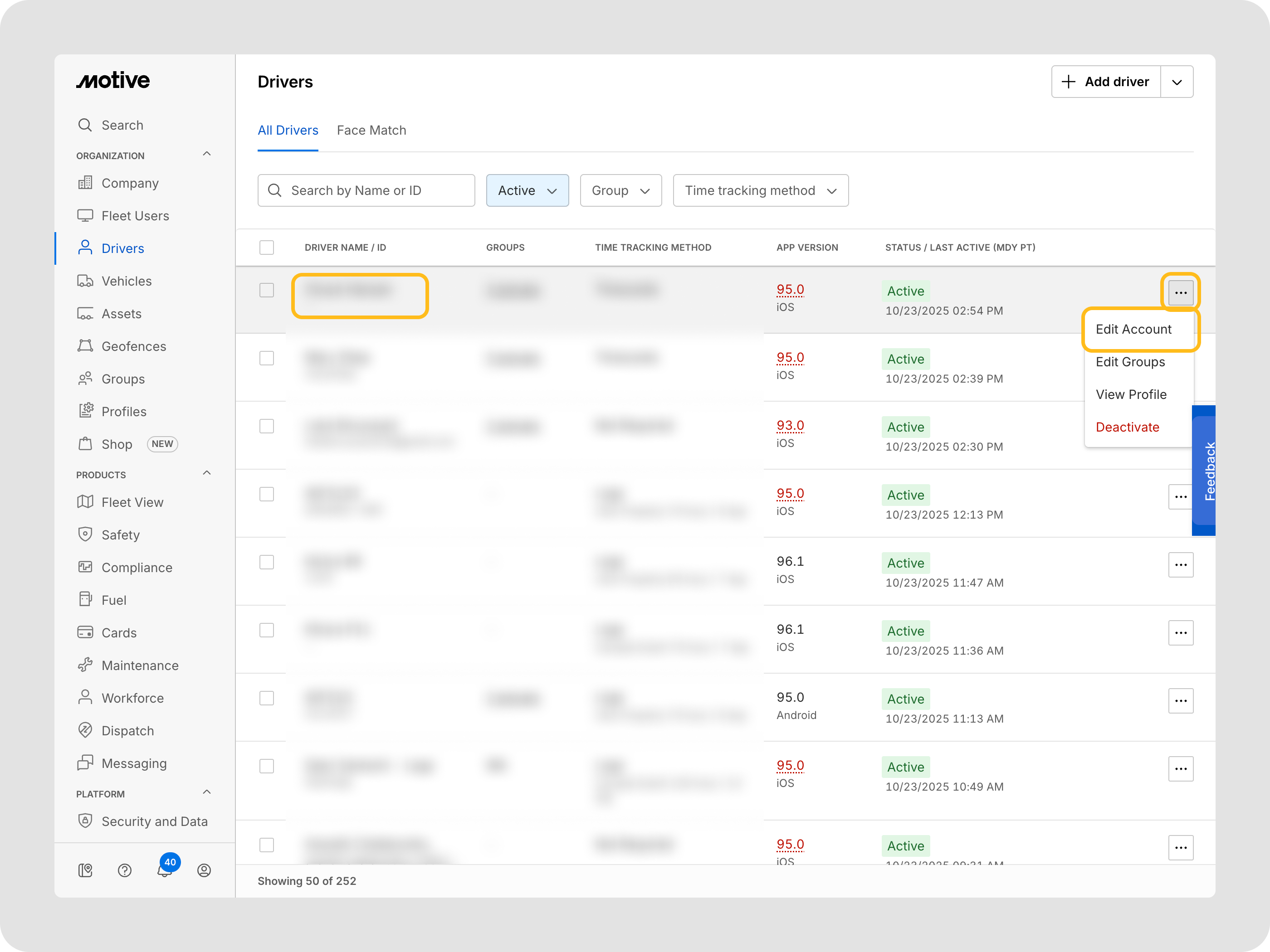 - Inicie sesión en la aplicación Motive Driver y conéctese a un vehículo.