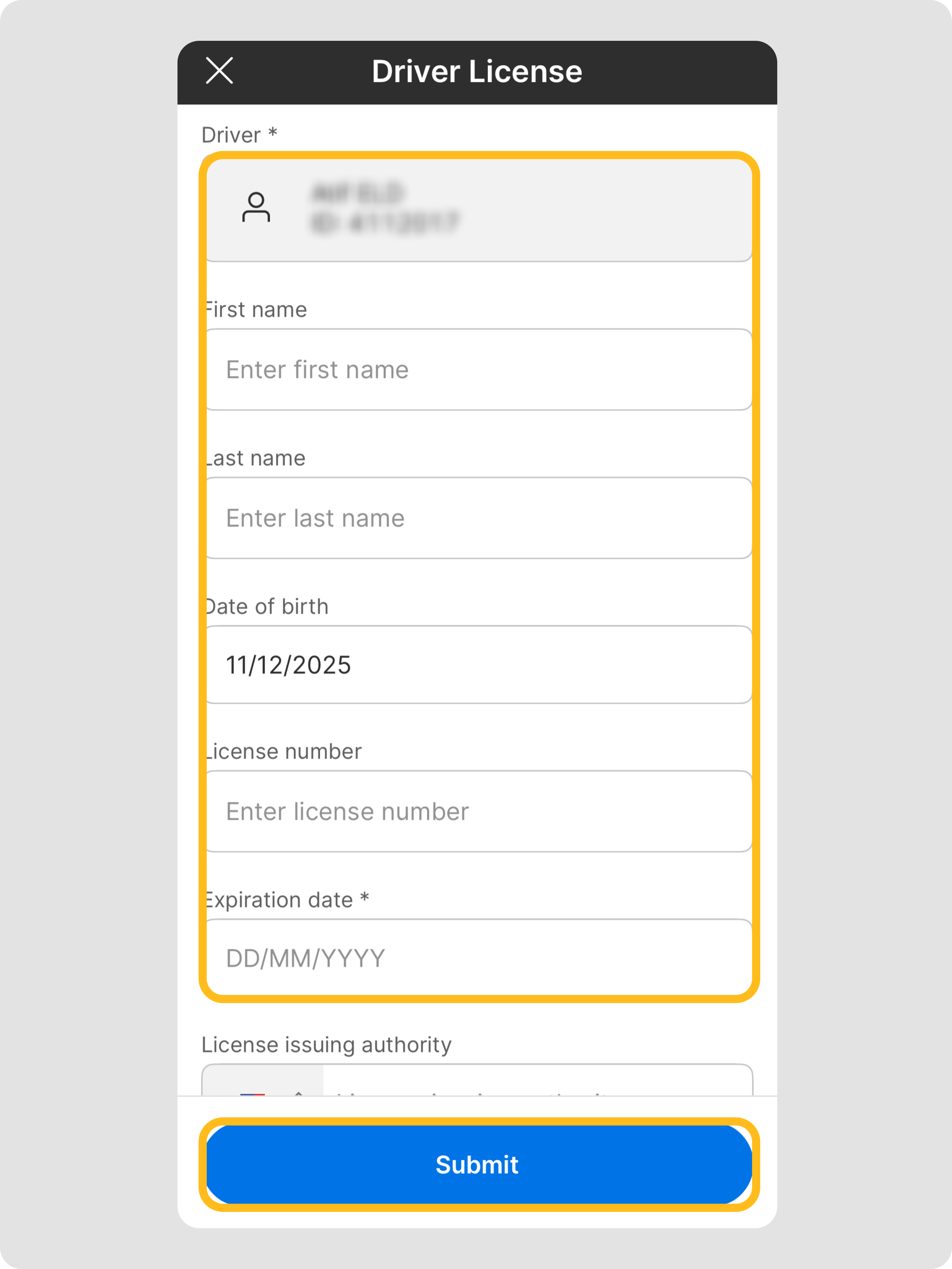 | Nota: Solo la Licencia de Conducir mostrará la información extraída al conductor antes de enviarla. Todos los demás documentos DQ mostrarán la información extraída después de ser procesados. |