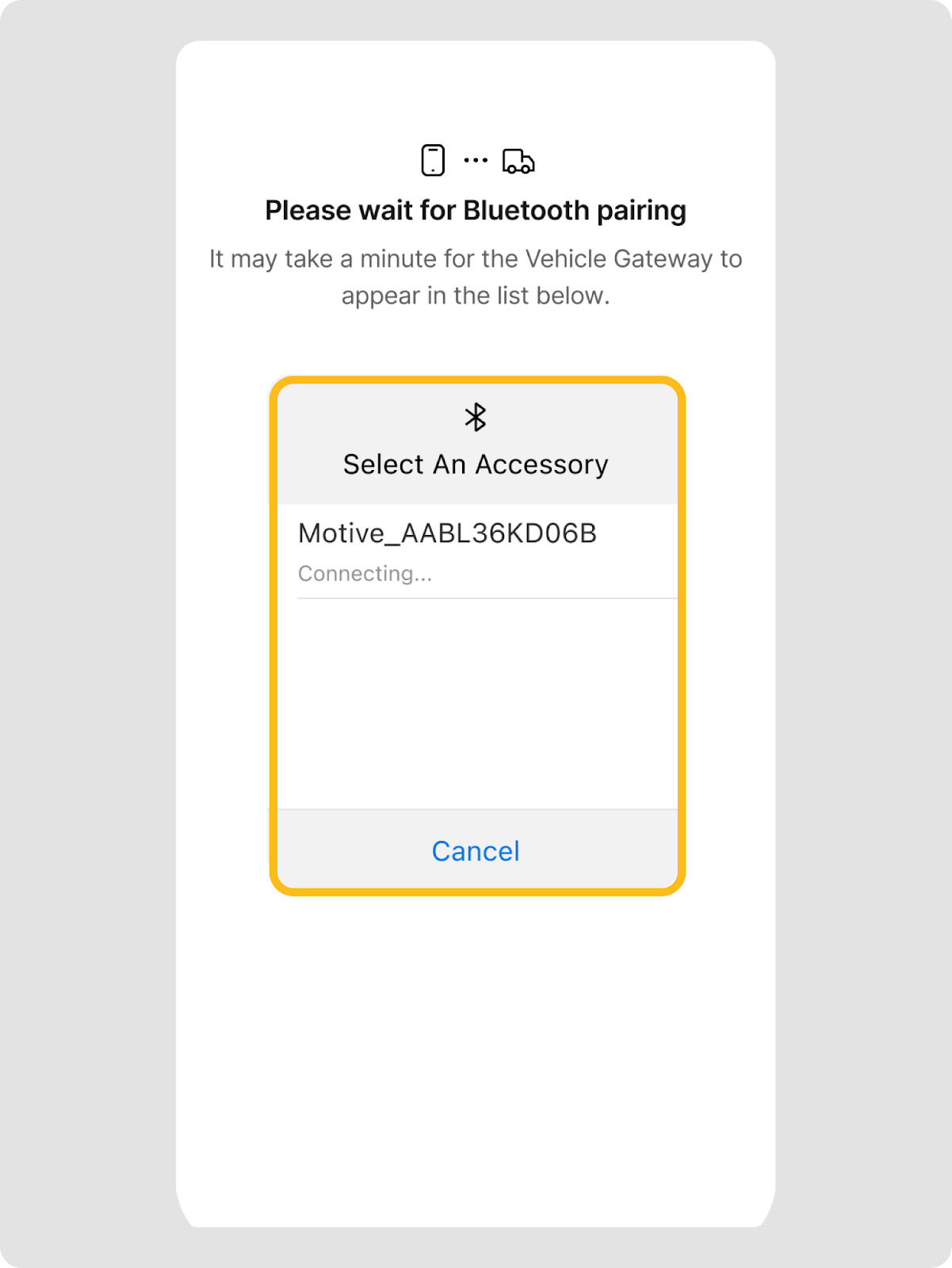 - El estado del vehículo seleccionado mostrará Conectando mientras la aplicación Motive Driver establece la conexión.