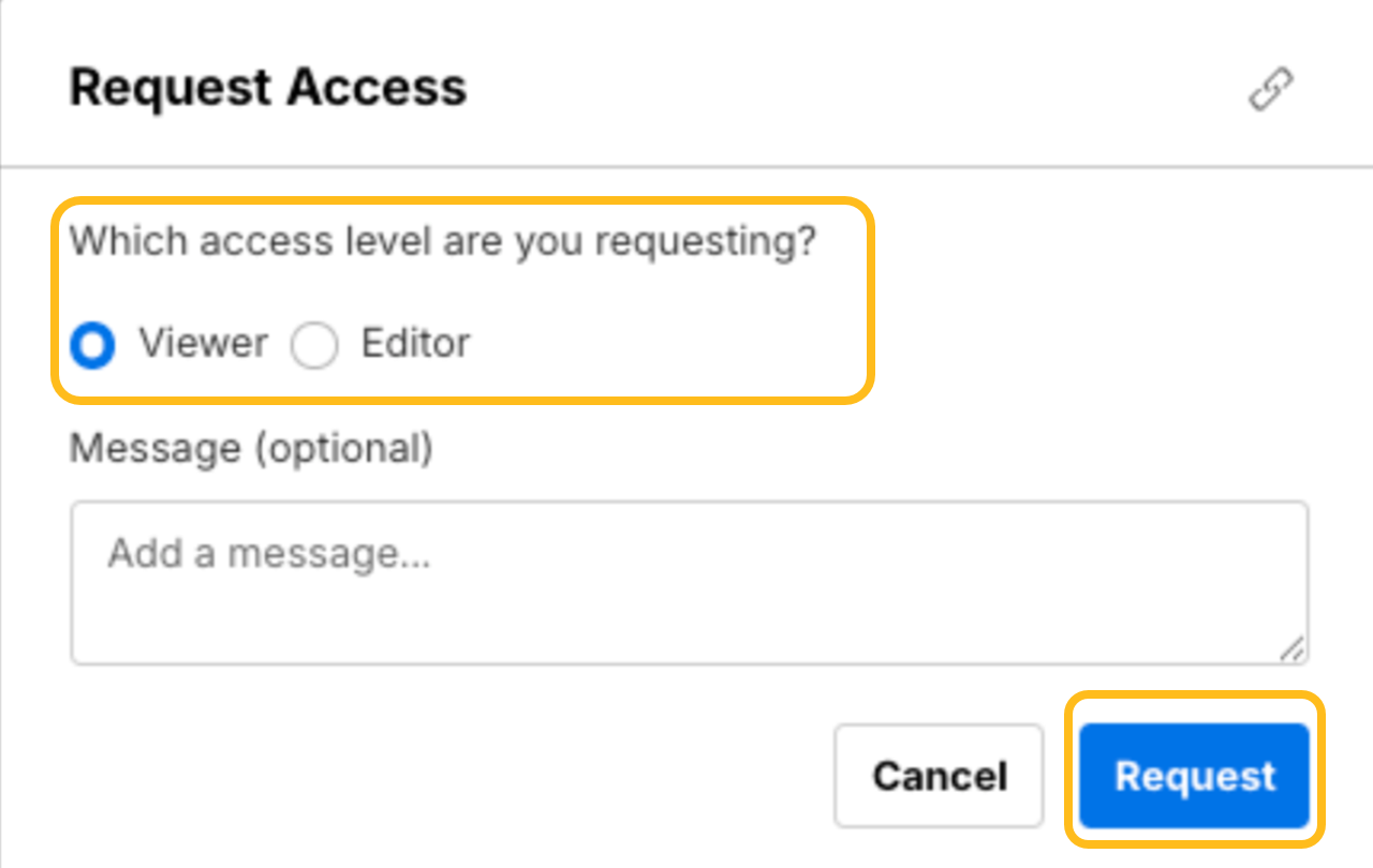- Los usuarios pueden solicitar acceso de espectador o edición a la respuesta/panel que intentan ver seleccionando Solicitar permiso.