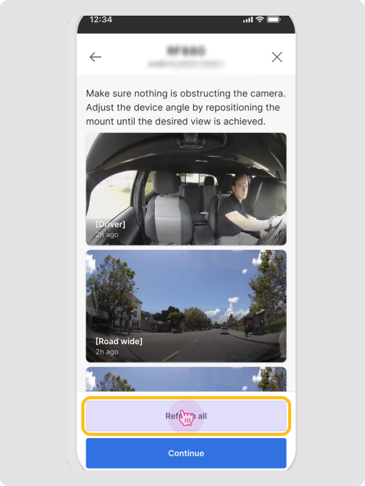 - Haz los ajustes necesarios en el AI Dashcam Plus para obtener imágenes más claras si es necesario. Toca Actualizar Todo para mostrar las imágenes actualizadas.
