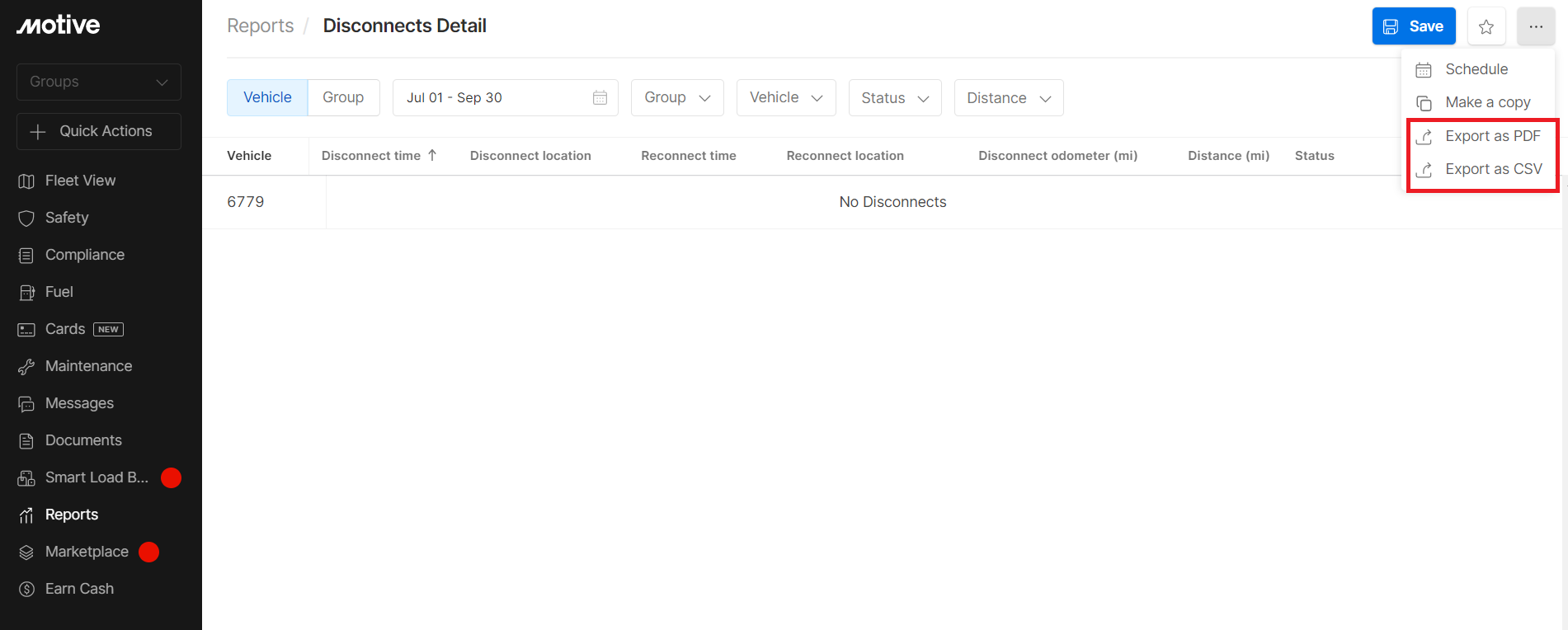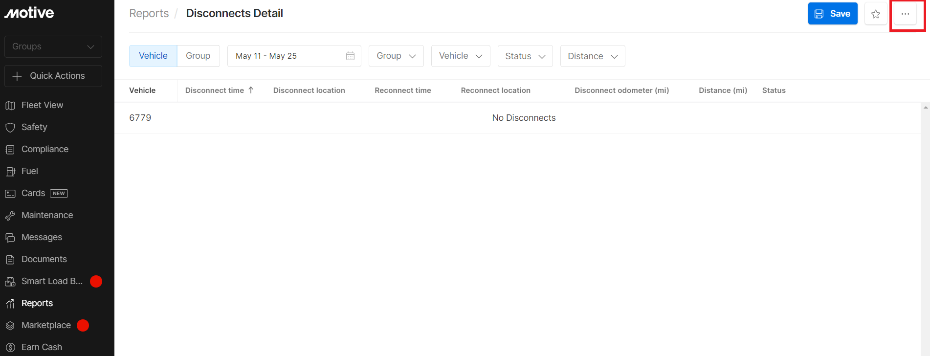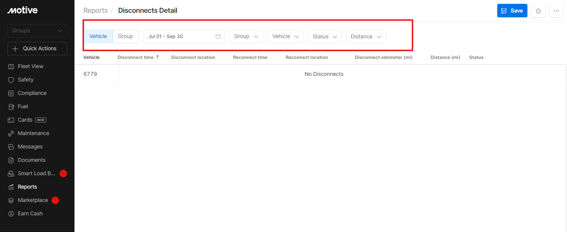 4. Utilisez des filtres tels que Date, Véhicule Types, État et Distance pour accéder aux rapports.