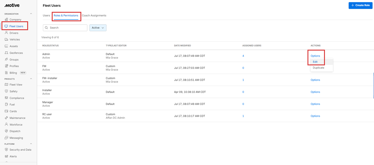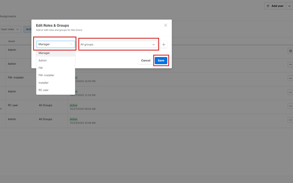 4. Sélectionnez l’utilisateur auquel vous souhaitez attribuer un rôle et cliquez sur les trois points. Sélectionnez Modifier les rôles et groupes.