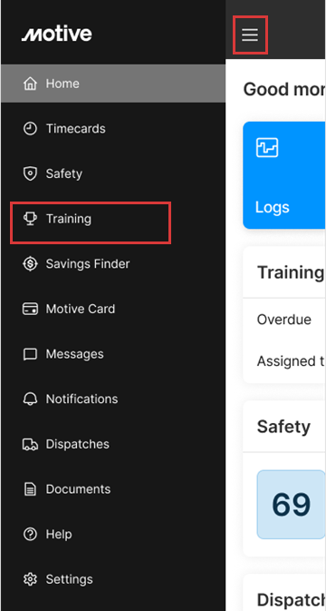La formation intégrée est disponible pour les clients disposant d’un abonnement à la gestion de la main-d'œuvre avec la formation activée. Les utilisateurs de la flotte doivent avoir les permissions Voir les modules de formation et/ou Modifier les modules de formation pour accéder et gérer la formation dans le tableau de bord de la flotte Motive, et les conducteurs doivent utiliser l’application Conducteur Motive pour voir et compléter les formations attribuées.