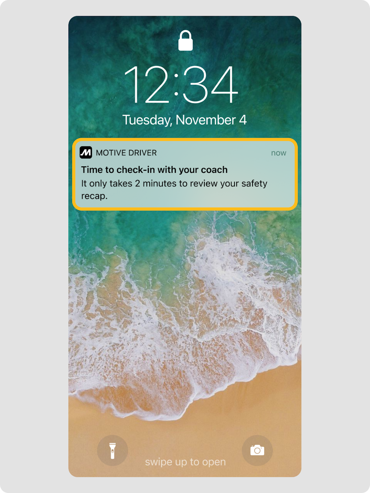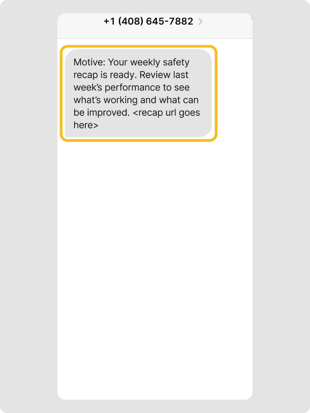- Les conducteurs reçoivent les rappels Coach IA sur leurs appareils mobiles via des notifications push et in-app dans l’App Conducteur Motive, ainsi que des SMS avec un lien direct vers leur vidéo récapitulative (si Motive dispose de leurs numéros de téléphone fournis par la flotte).