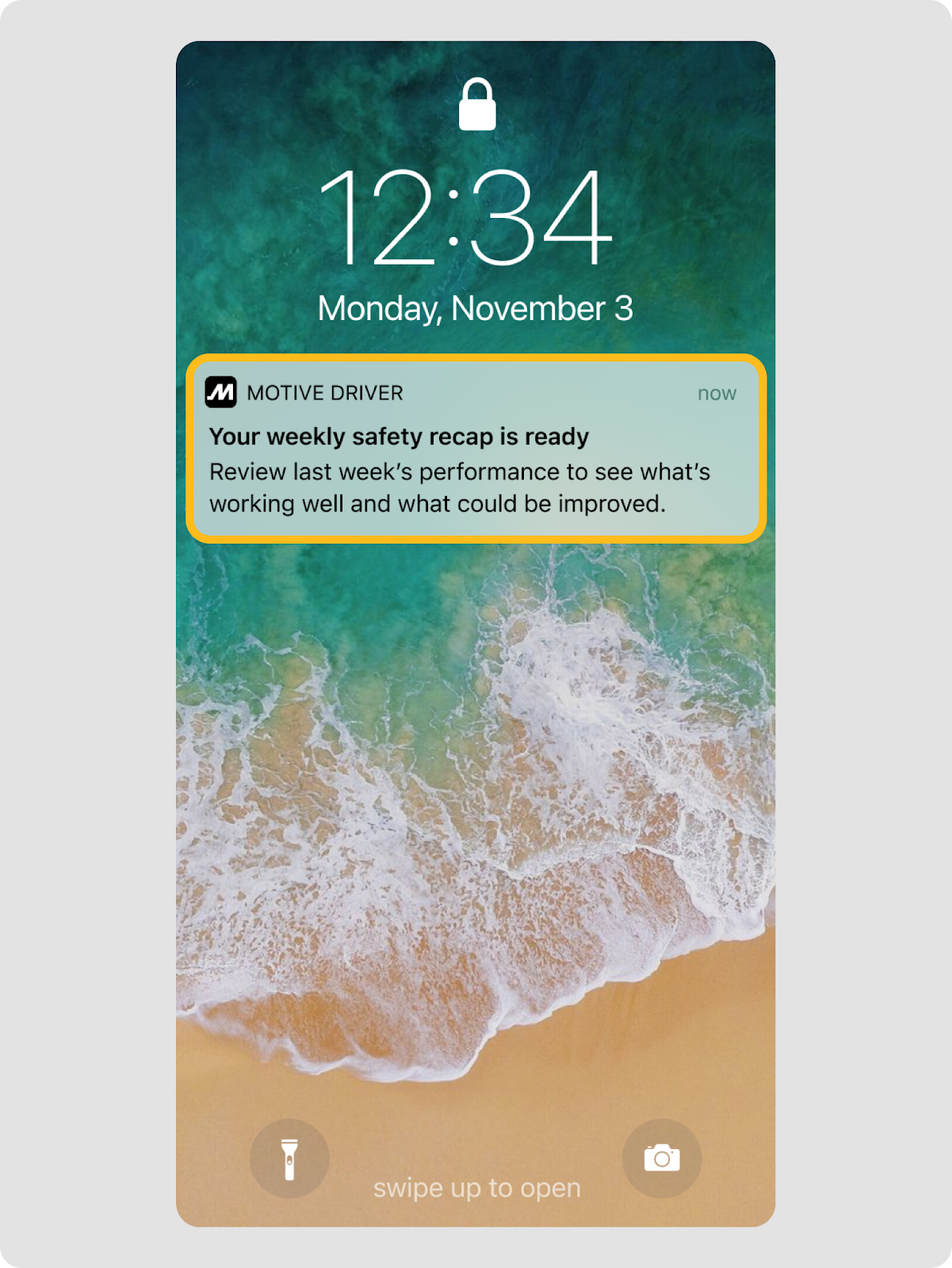 La notification ou le message initial du lundi informe les conducteurs qu’ils ont un nouveau résumé de performance à regarder et les incite à revoir leur performance de la semaine précédente.