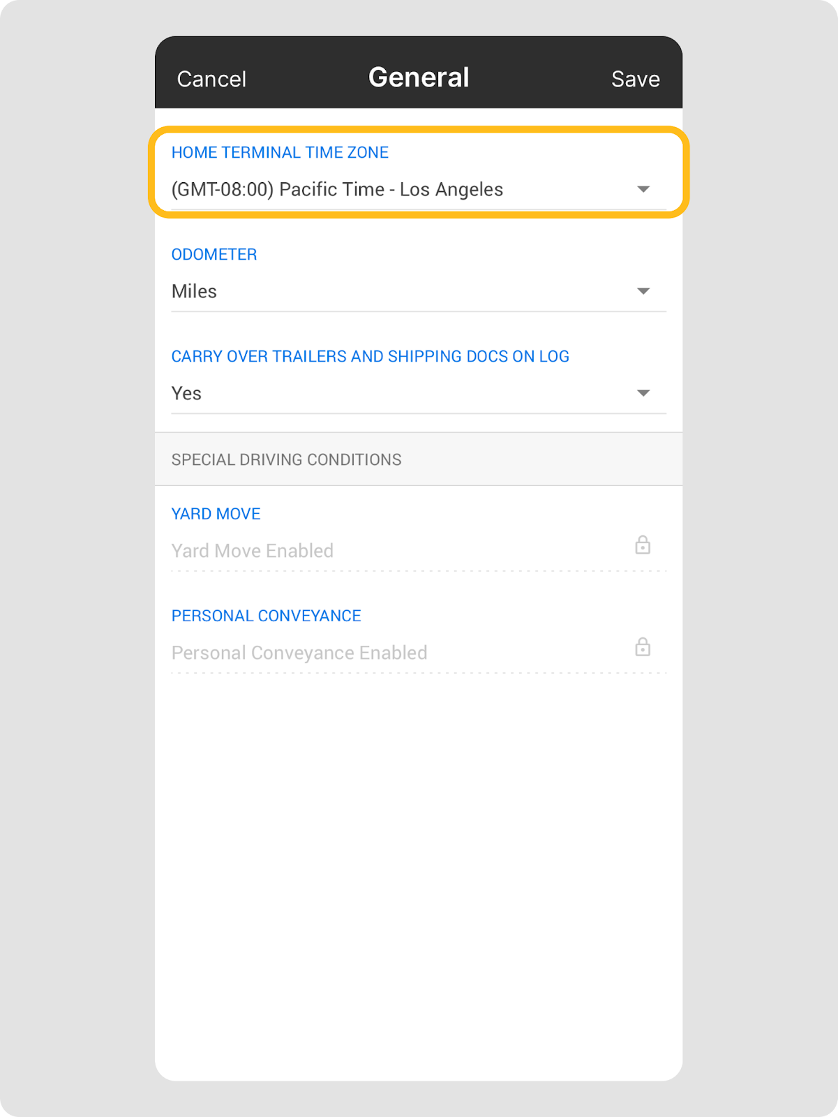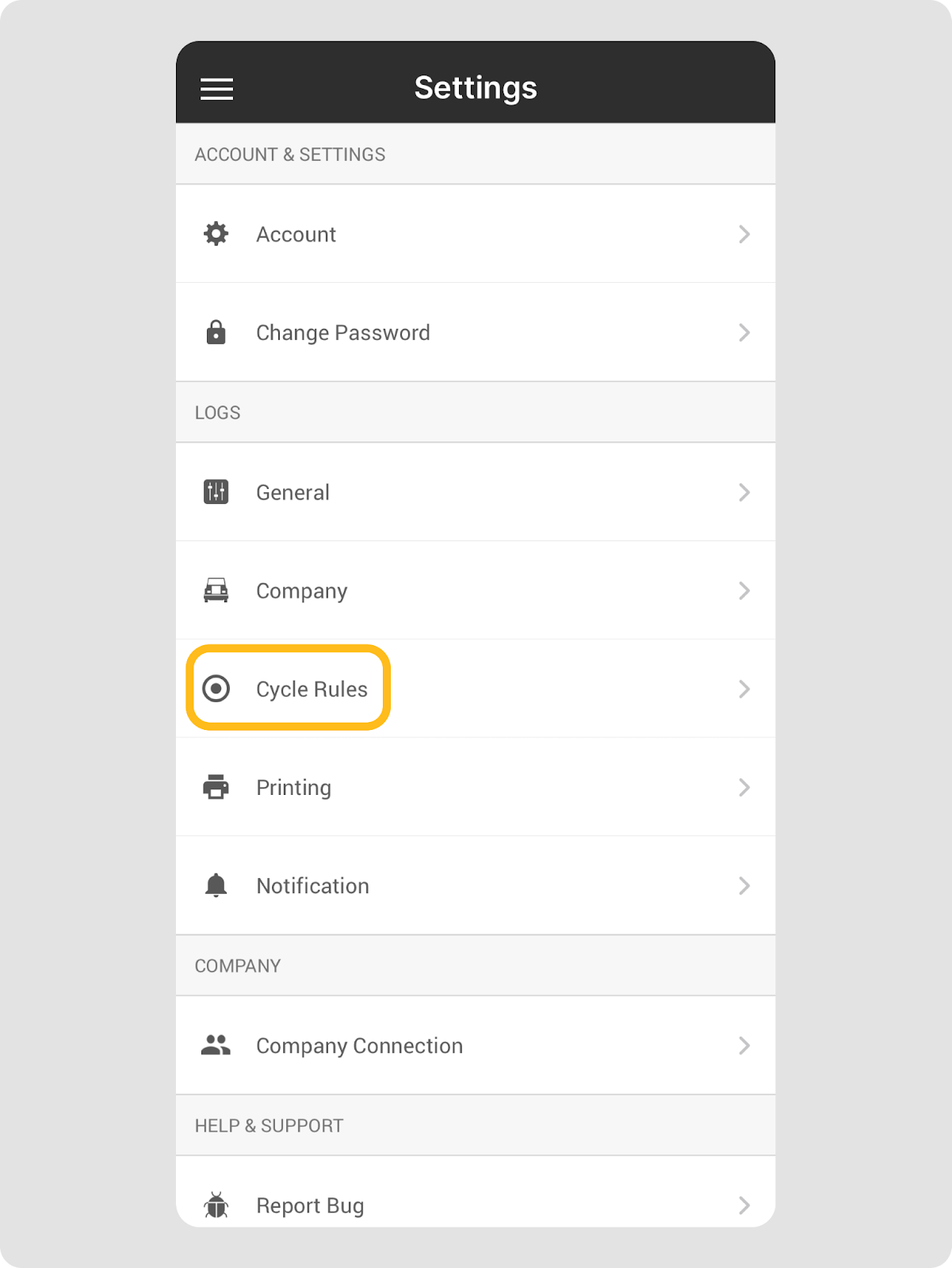 - Dans l’application Driver, allez dans Paramètres > Règles de cycle.