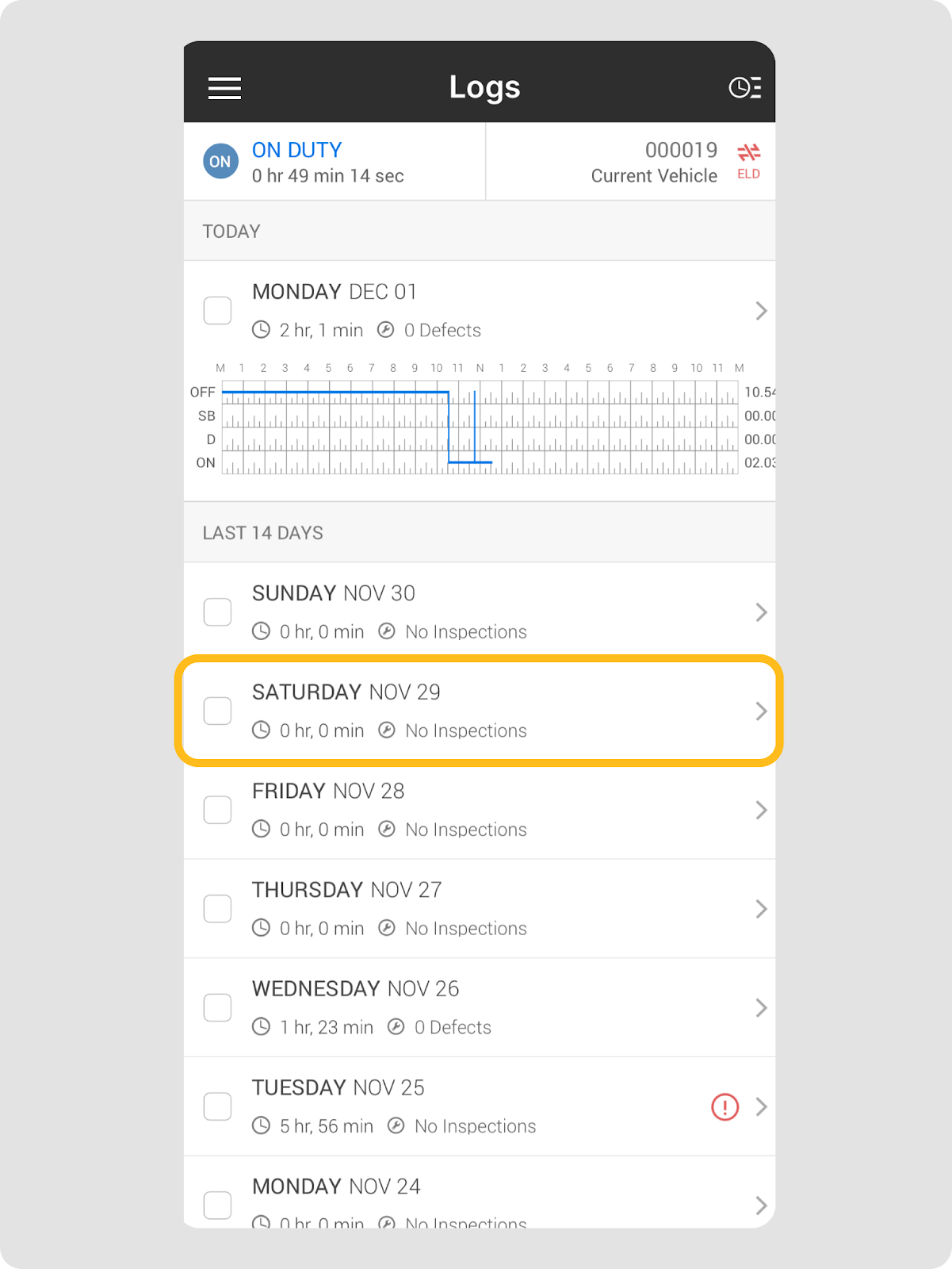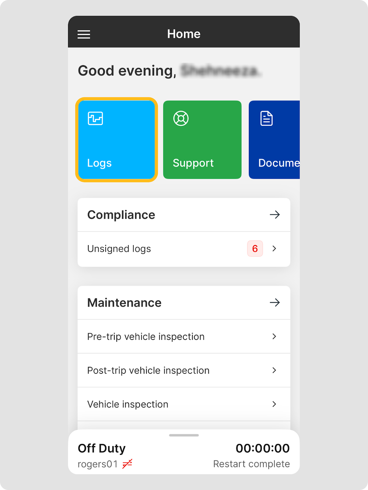 - Depuis l’écran d’accueil de l’application Motive Driver, appuyez sur Journaux.