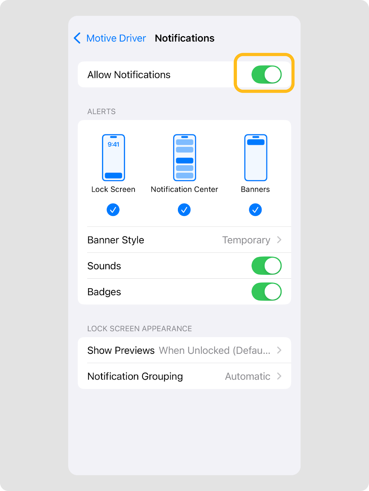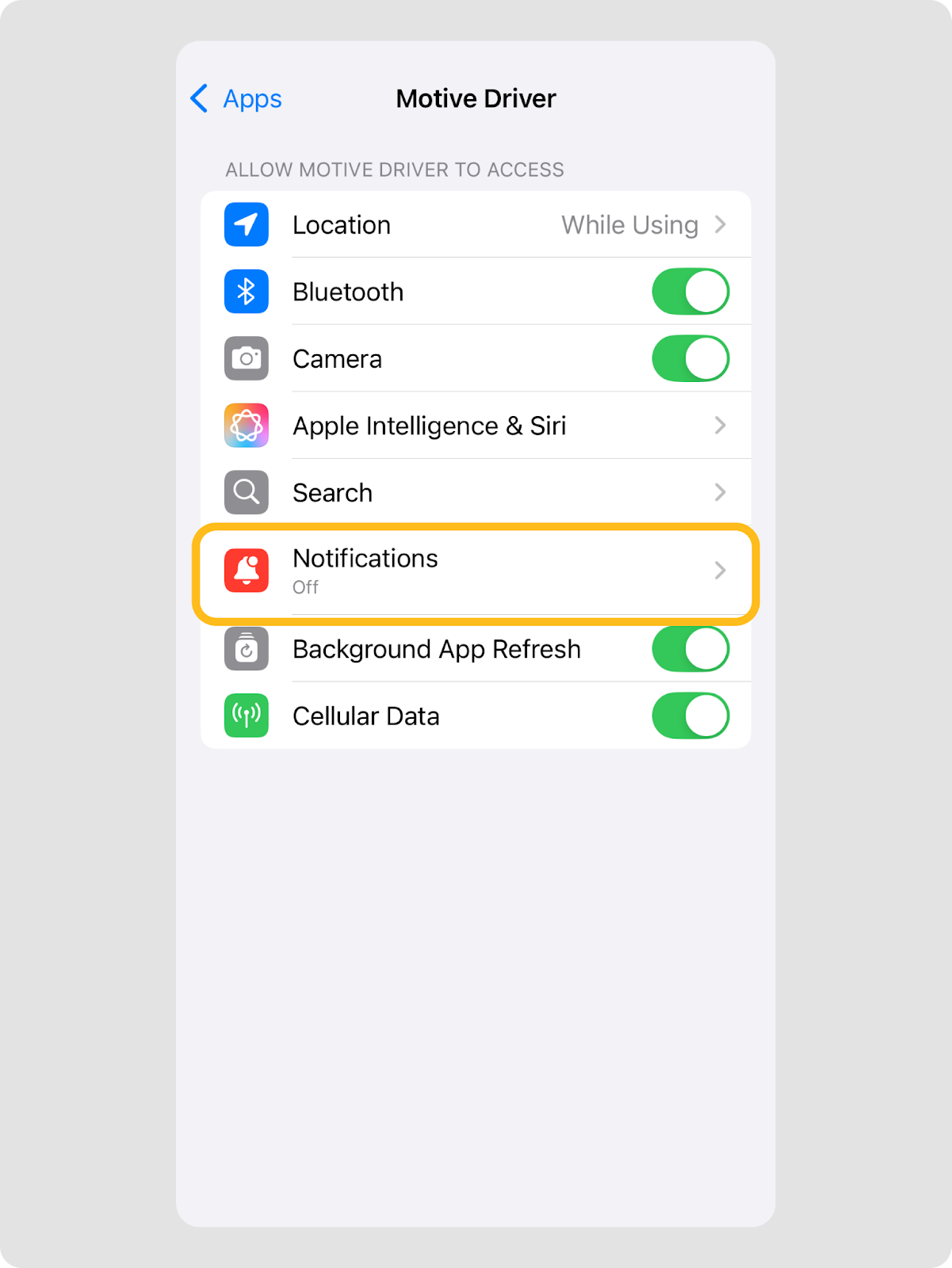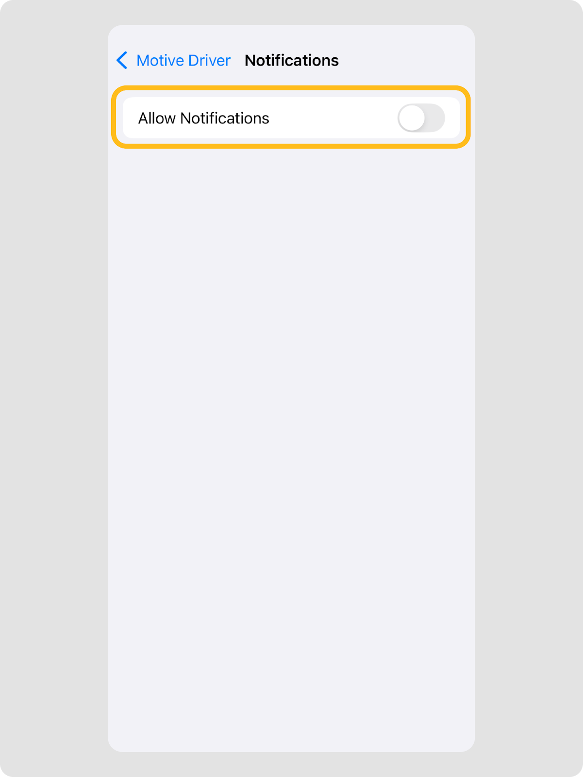 - Appuyez sur le bouton pour activer les notifications pour l’application Motive Driver.