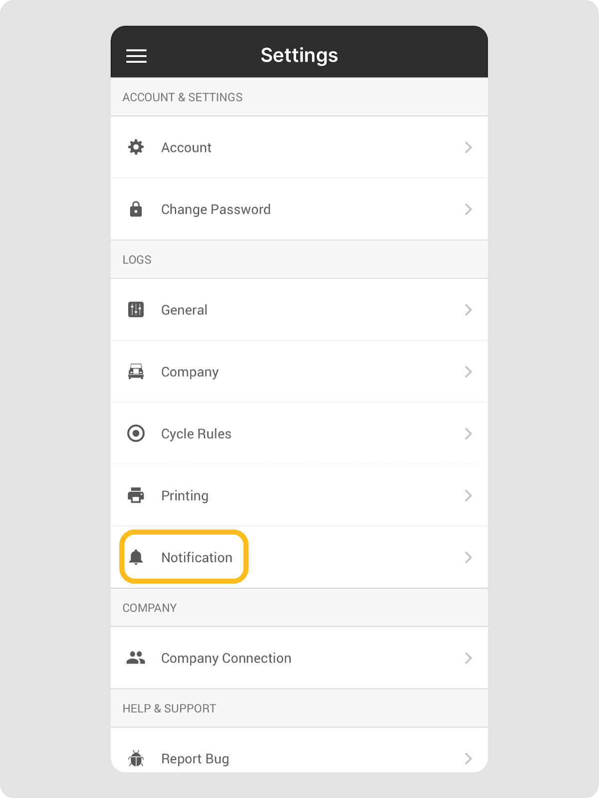 - Dans l’application Motive Driver, allez à Menu > Notifications.