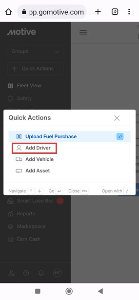 - Dans le tableau de bord Motive Fleet, allez à Admin>Conducteurs.