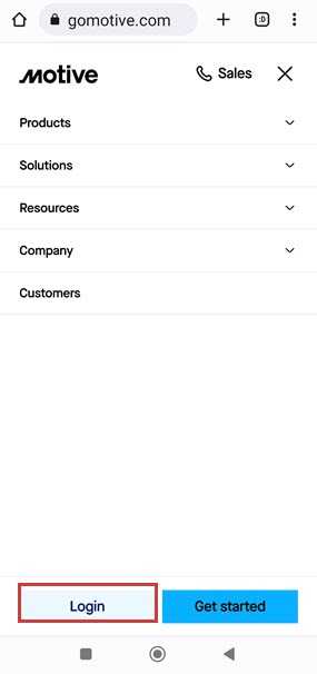 Entrez vos identifiants de connexion au tableau de bord Motive Fleet. Une fois connecté, appuyez sur l’icône menu en haut à gauche.