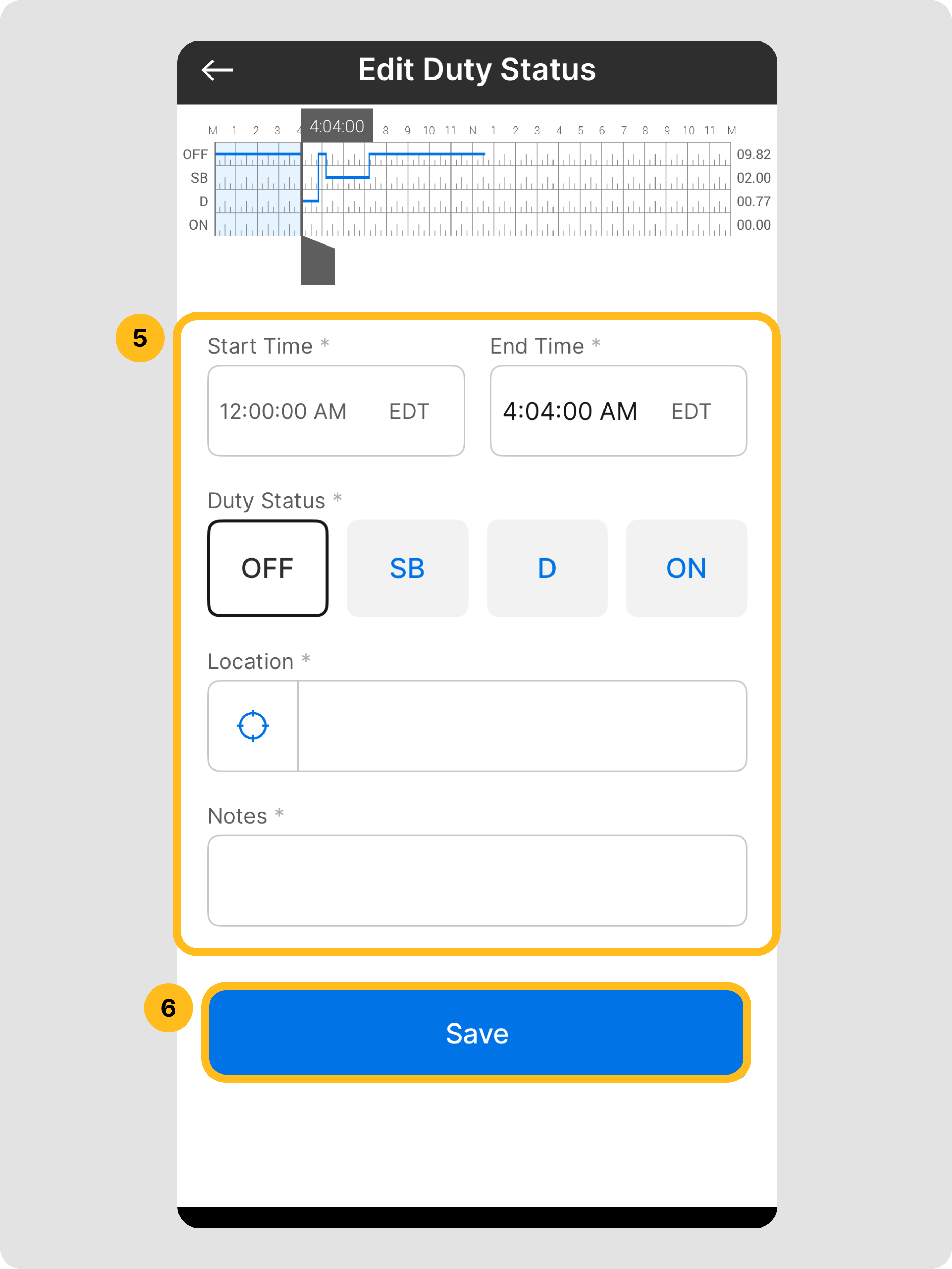 - Améliorer l'exactitude : Corrigez facilement les statuts de service, ajoutez des notes manquantes ou mettez à jour les informations du formulaire de journal telles que les numéros de remorque et les documents d'expédition pour garantir que les journaux sont toujours précis.