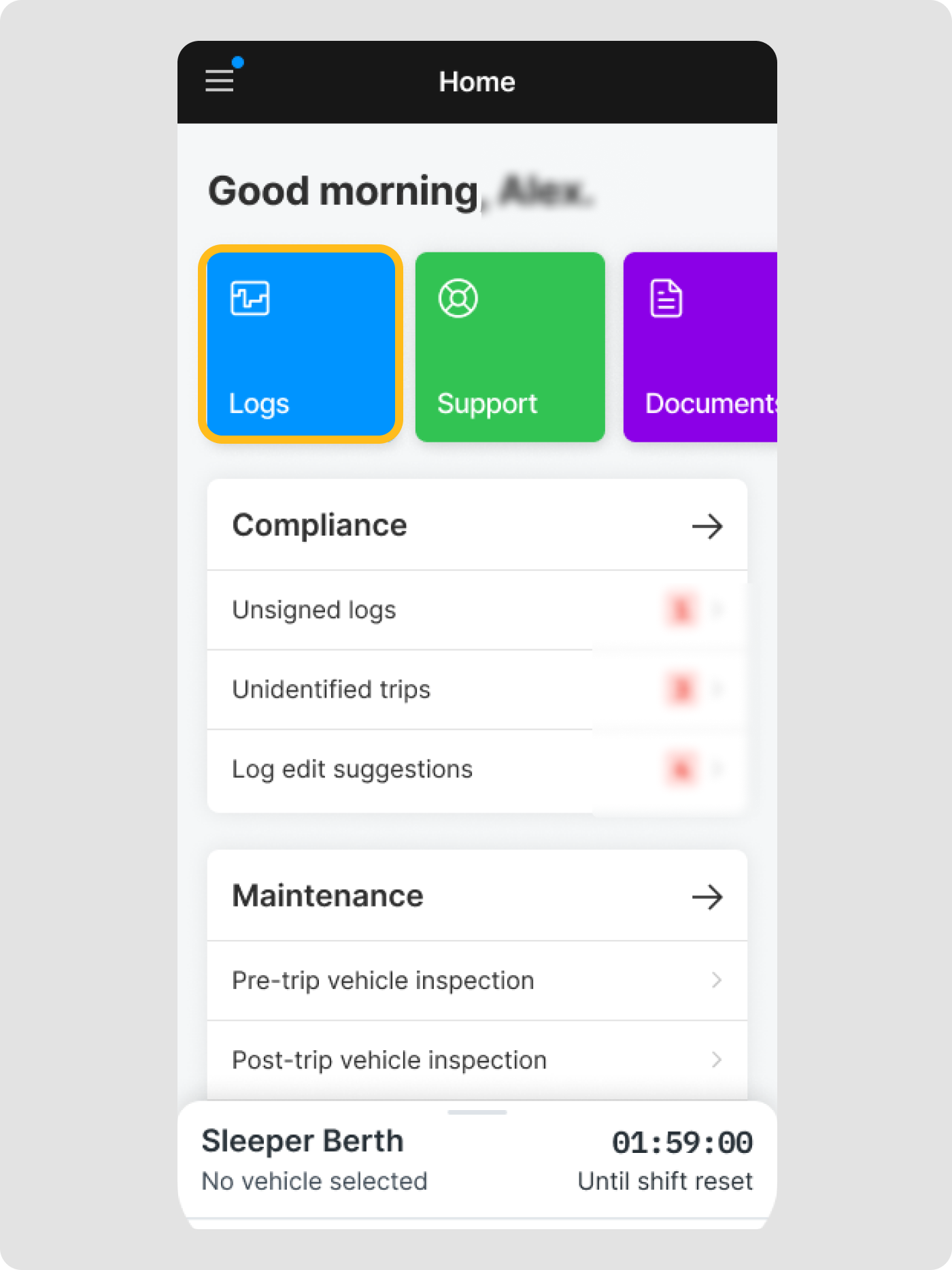 Dans l'application Motive Driver, appuyez sur Journaux.