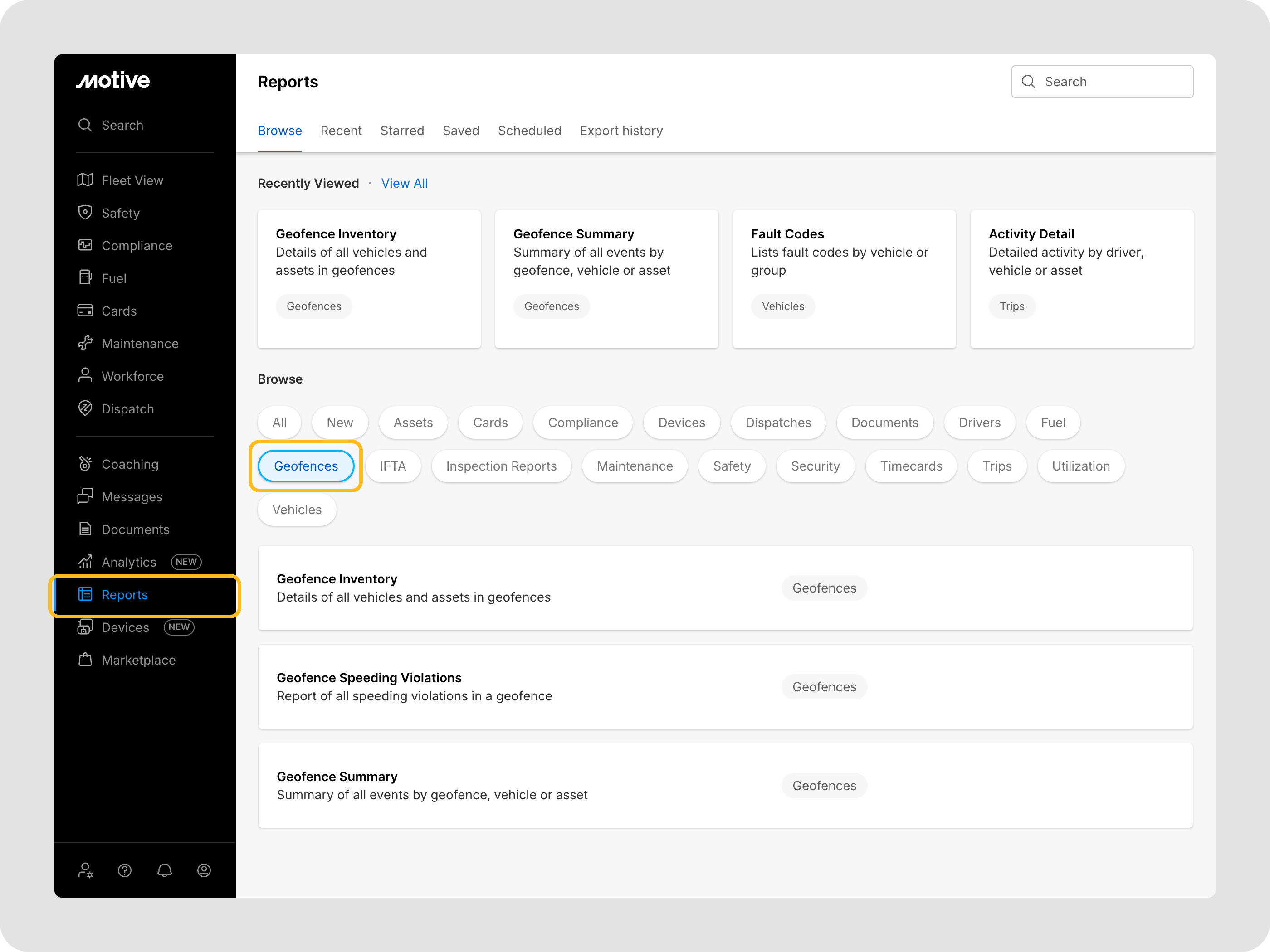 Motive offre une variété de rapports et d’alertes pour vous aider à exploiter efficacement vos données de géorepérage :