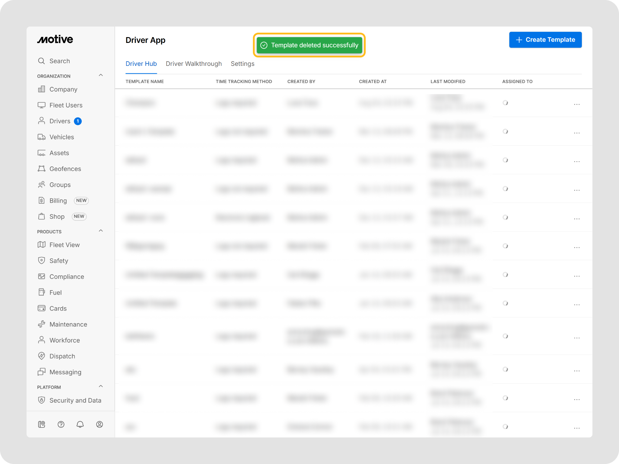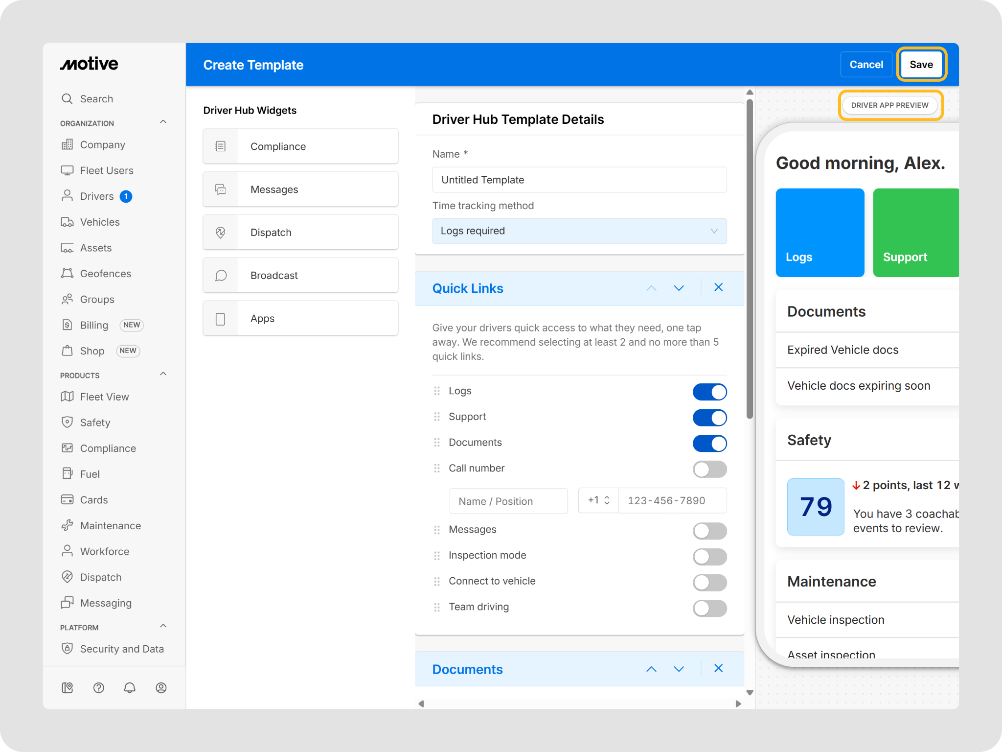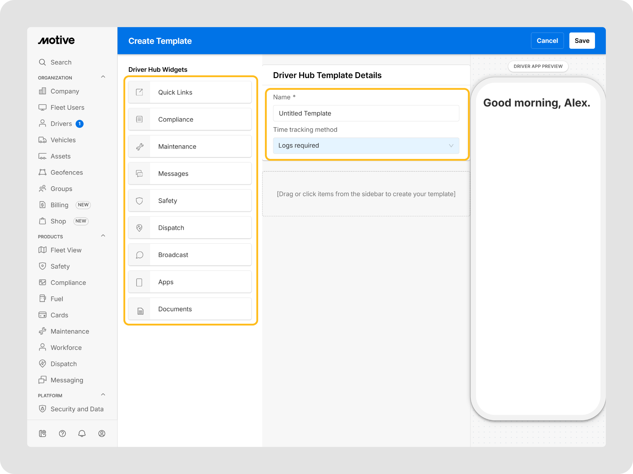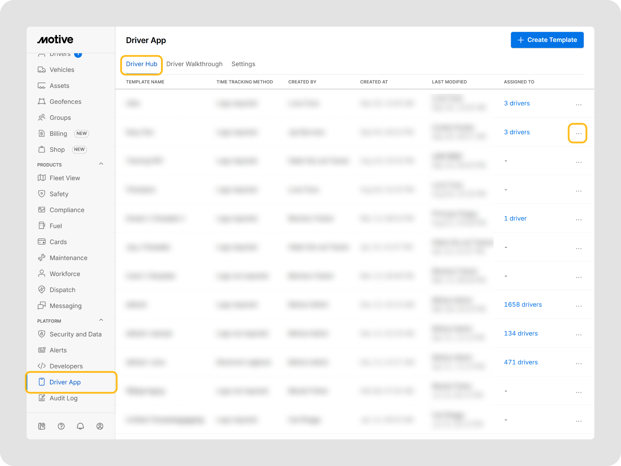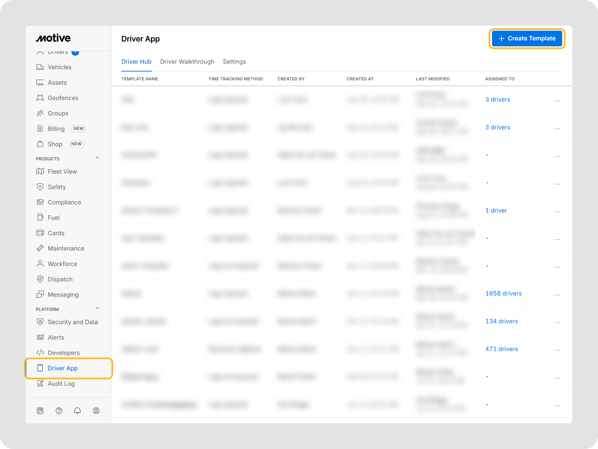 - Accédez au tableau de bord Motive Fleet > Driver App > Driver Hub.