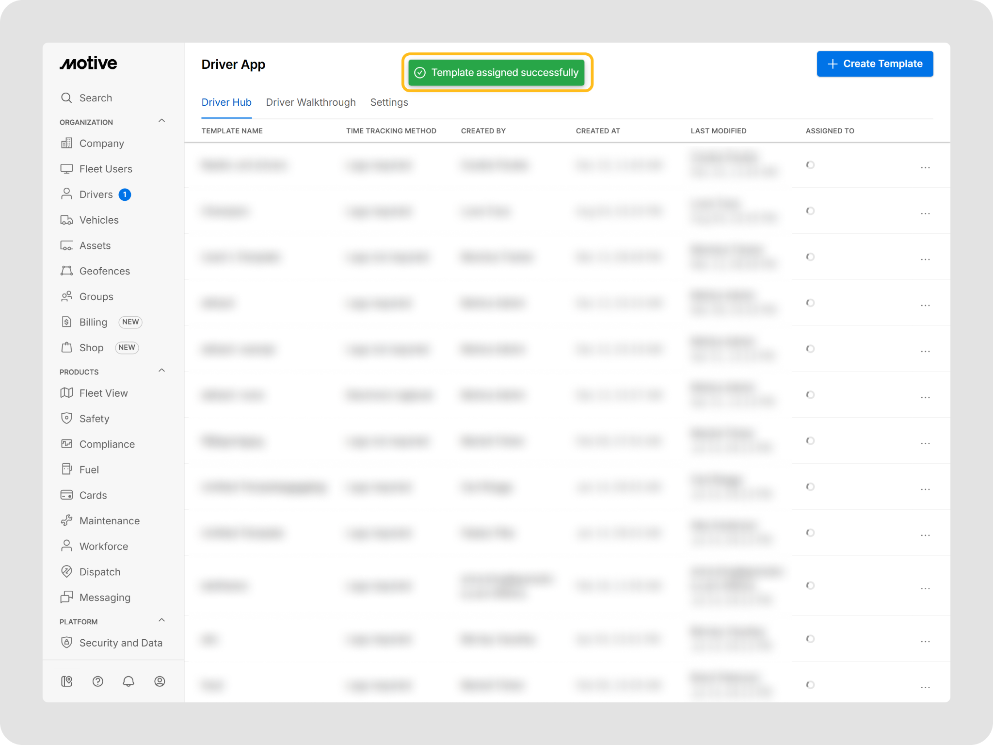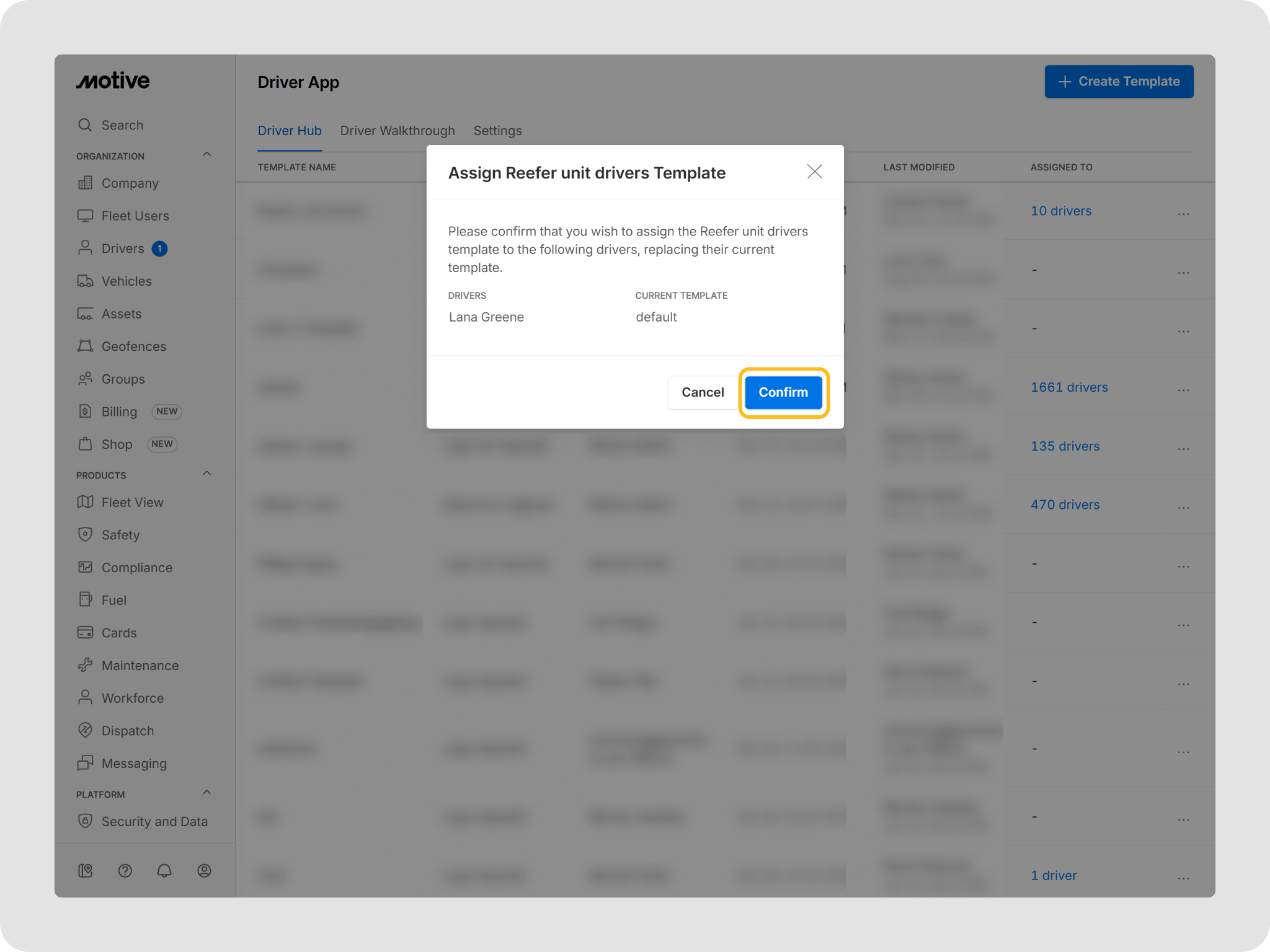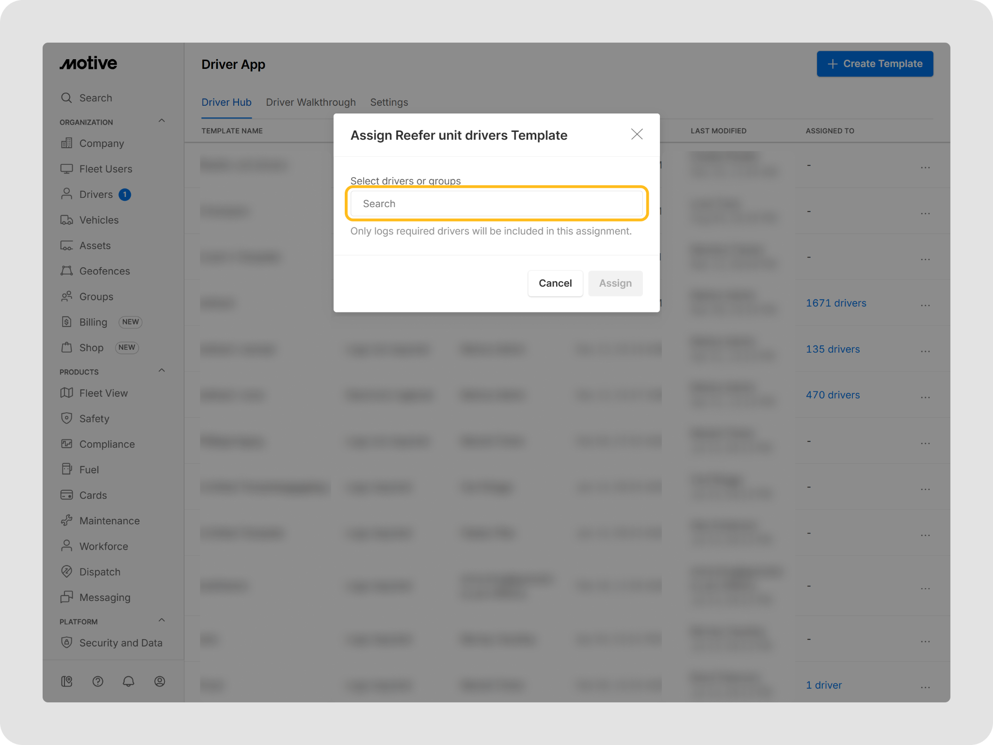 - Cliquez sur Attribuer une fois que vous avez sélectionné tous les conducteurs et groupes auxquels vous souhaitez attribuer ce modèle.