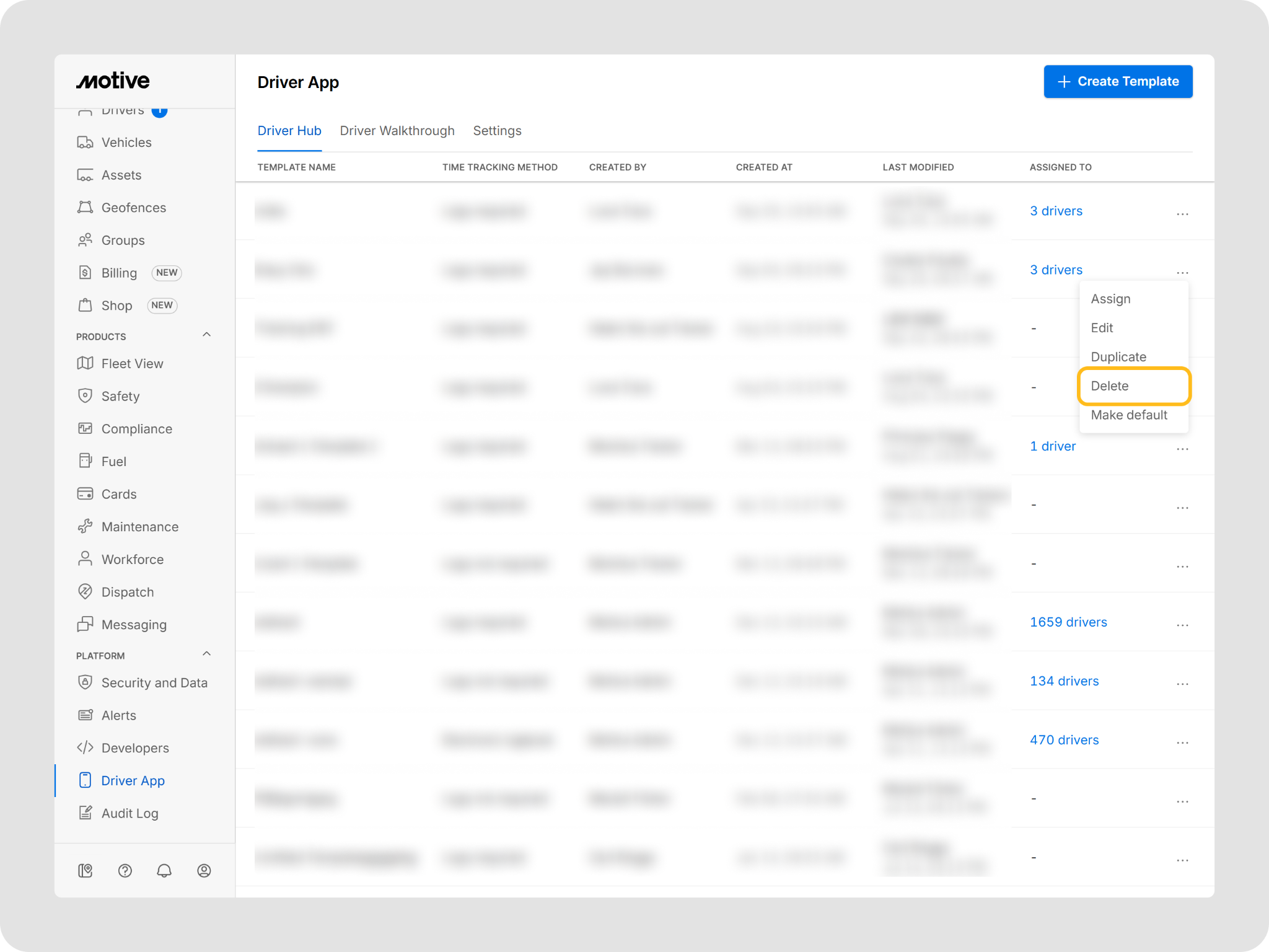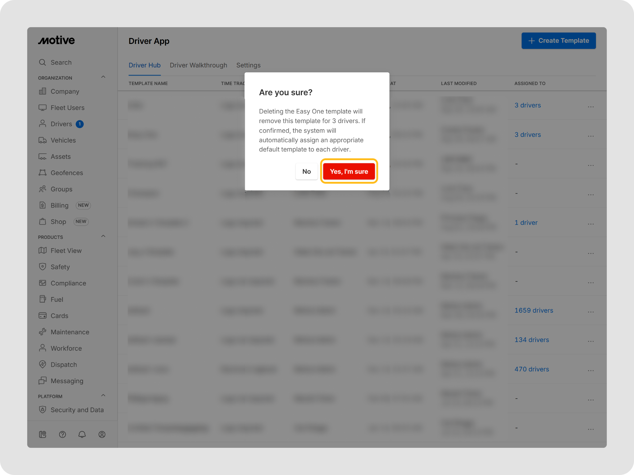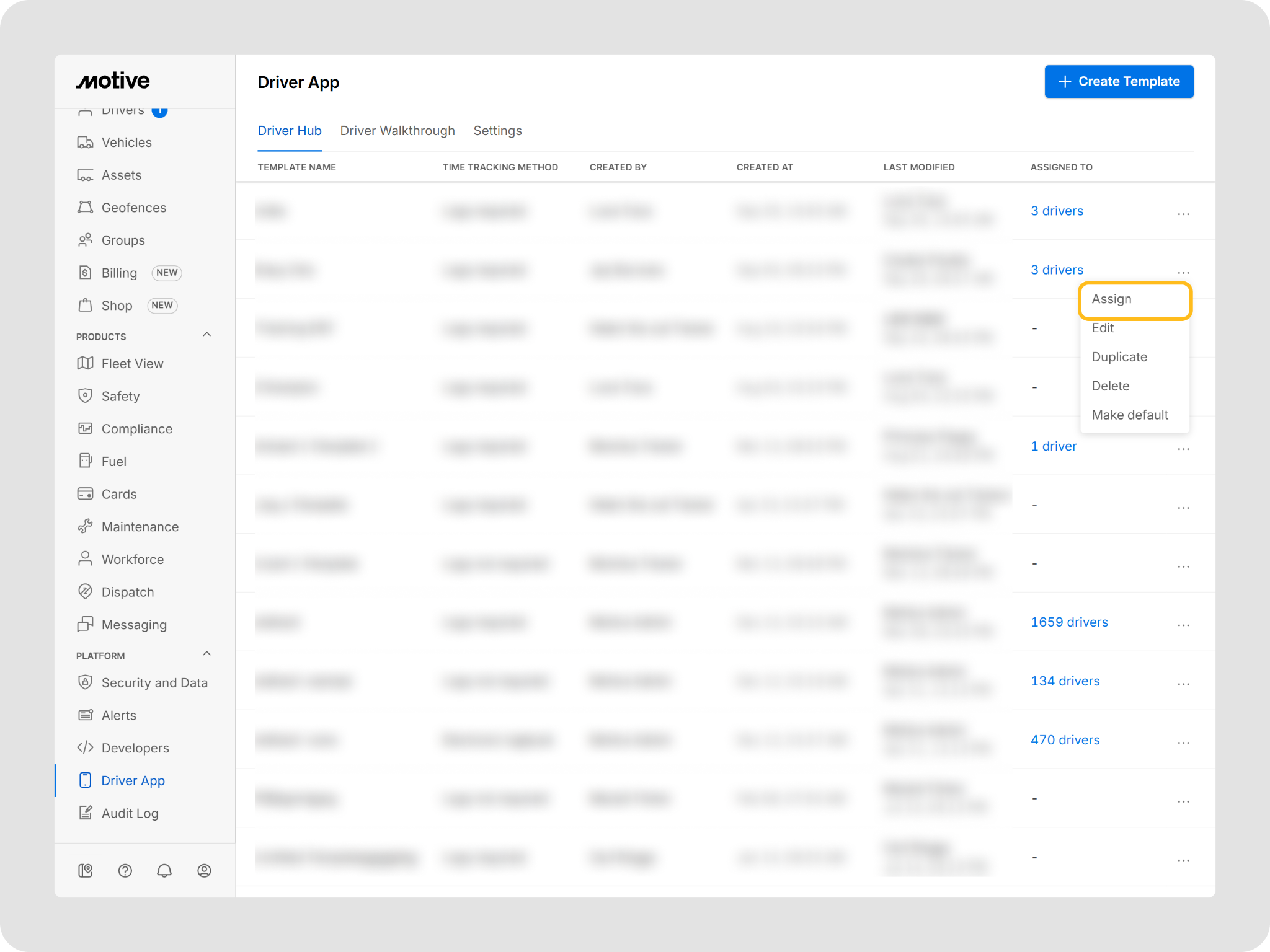 - Cliquez sur Attribuer une fois que vous avez sélectionné tous les conducteurs et groupes auxquels vous souhaitez attribuer ce modèle.